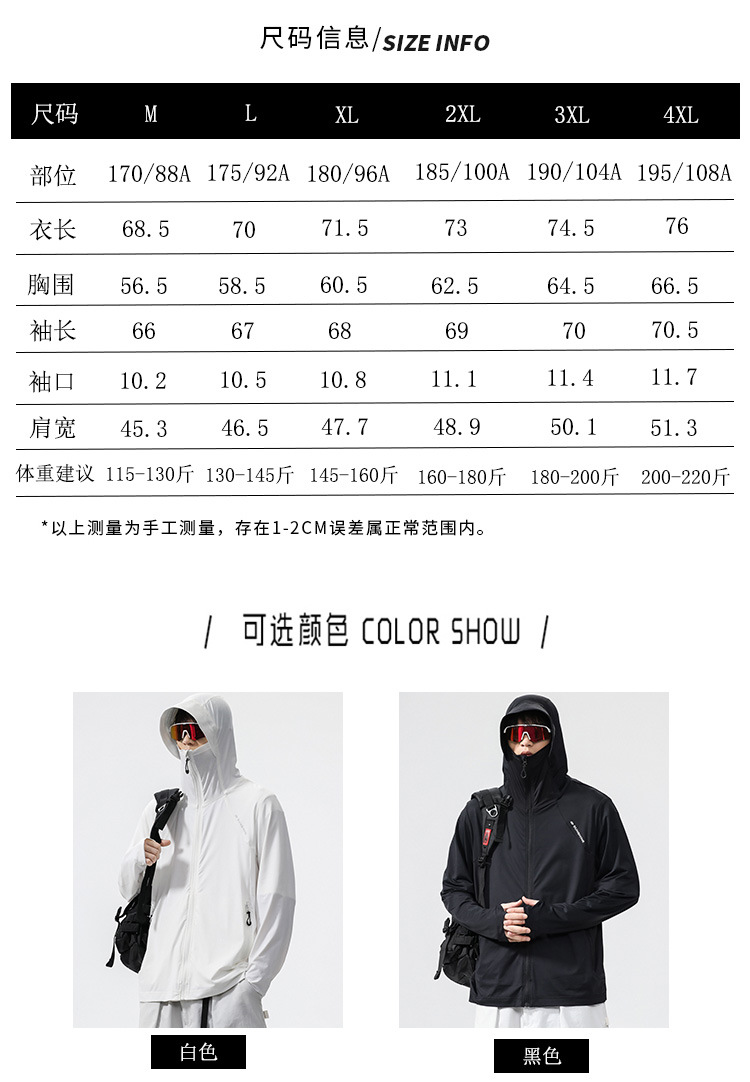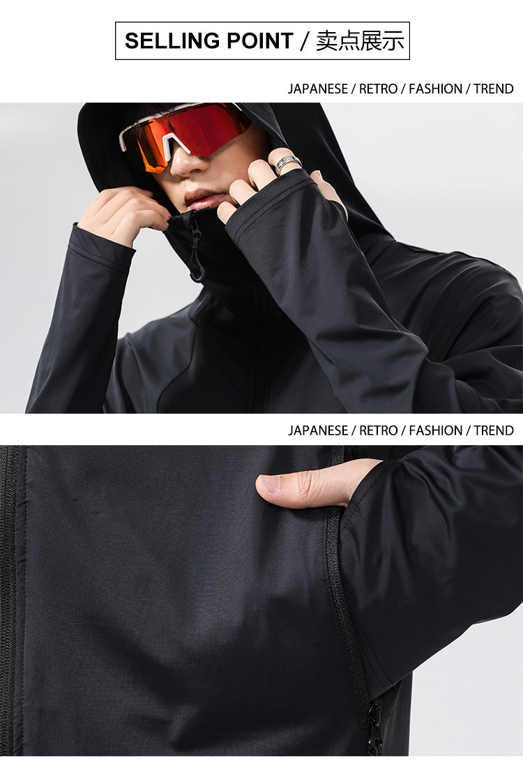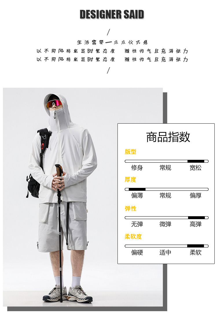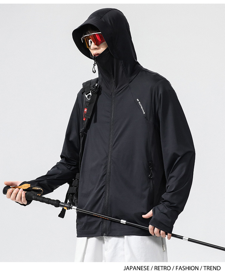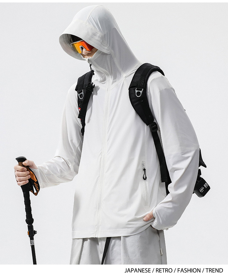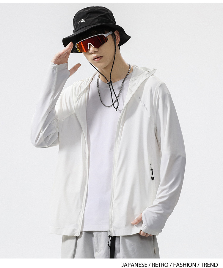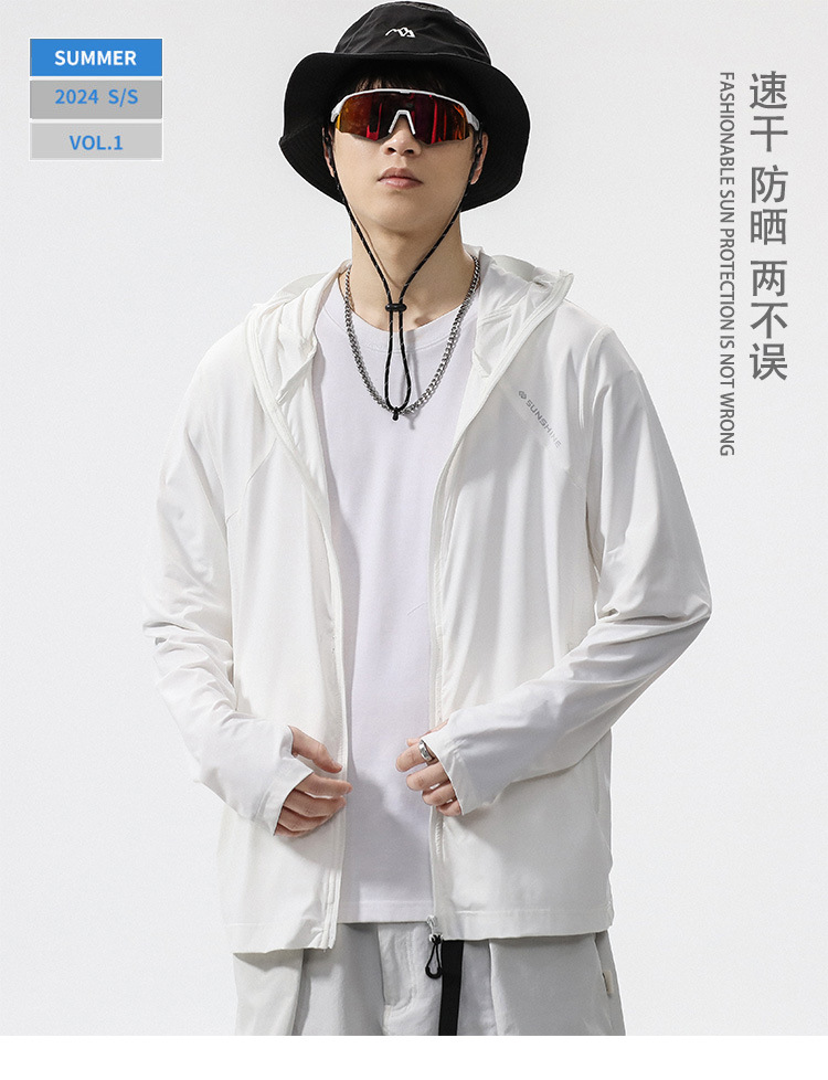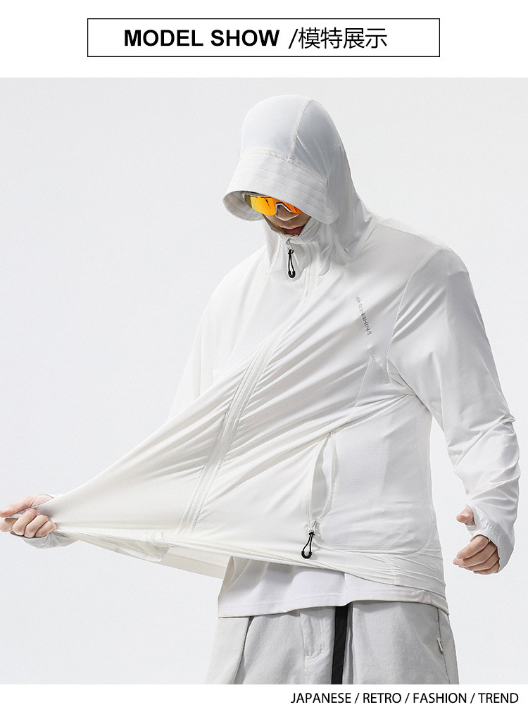 冰丝凉感连帽防晒衣男UPF50+夏季轻薄款透气防紫外线户外运动外套
