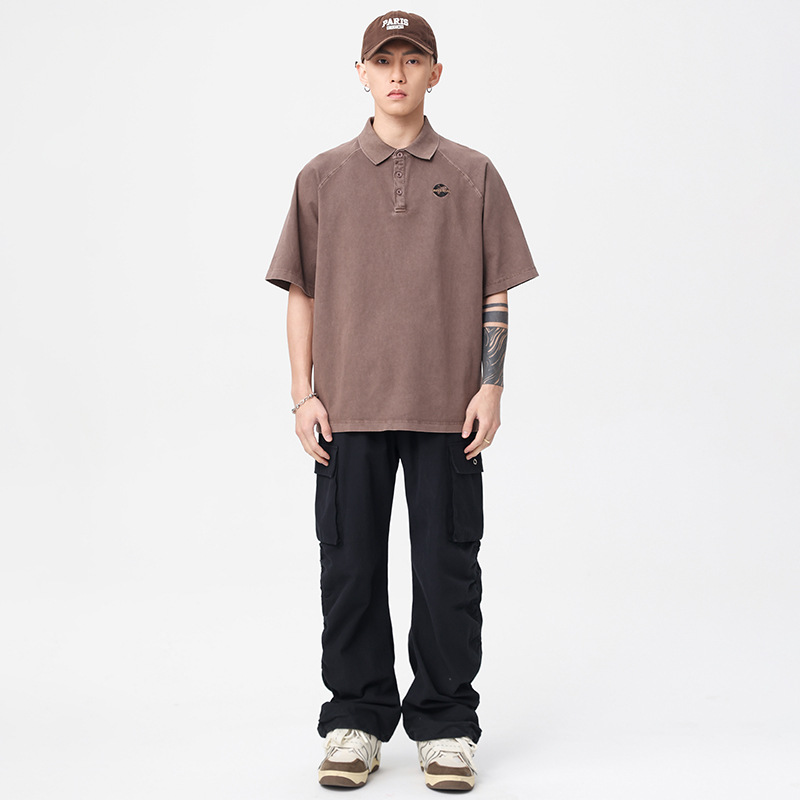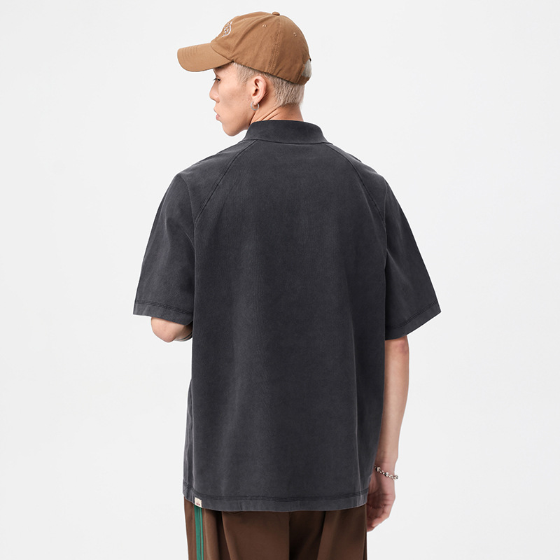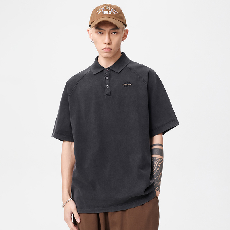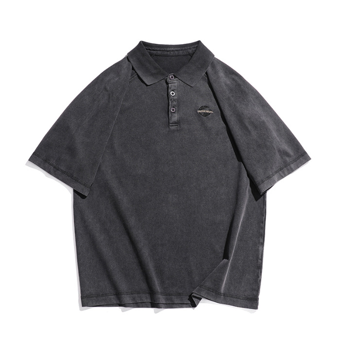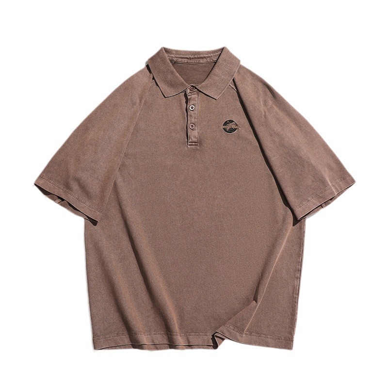 300g重磅短袖polo衫男夏季复古水洗纯棉宽松上衣男士潮流刺绣T恤