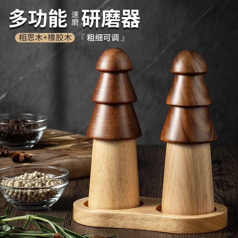 小树胡椒研磨器厨房家用相思木橡木黑胡椒玫瑰盐胡椒磨木质研磨瓶