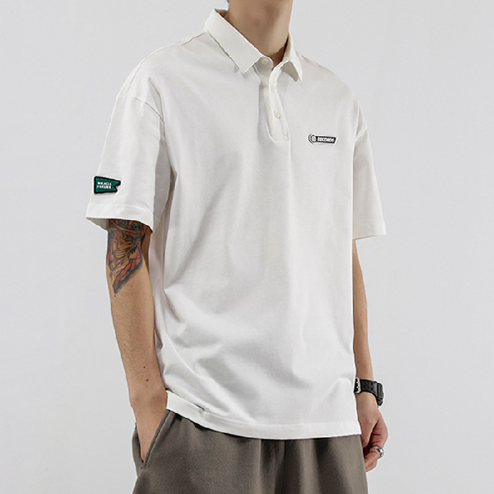 短袖polo衫男夏季潮流设计感小众t恤宽松潮牌衣服ins港风百搭半袖