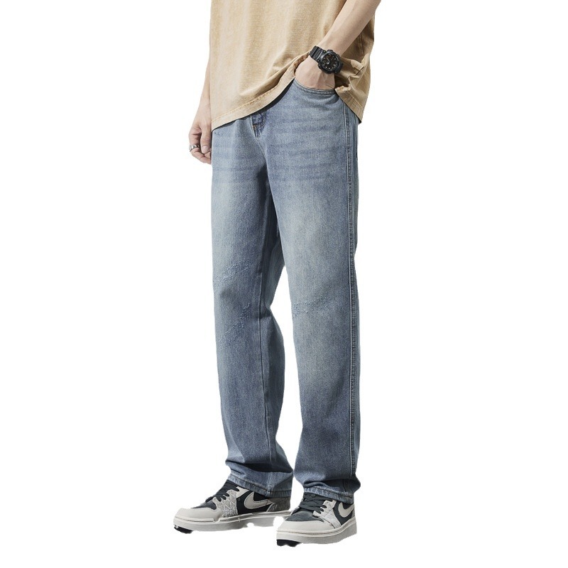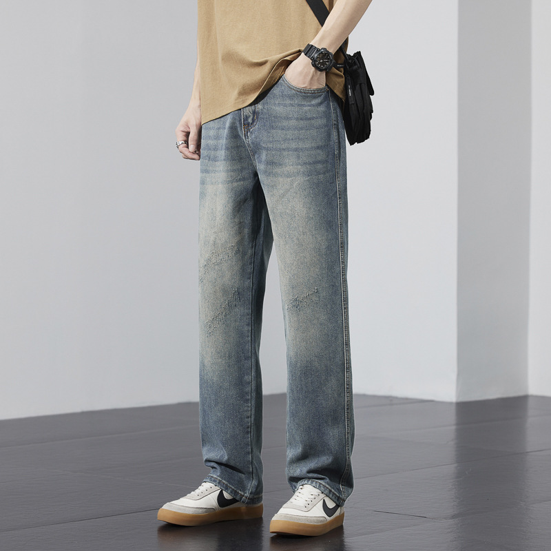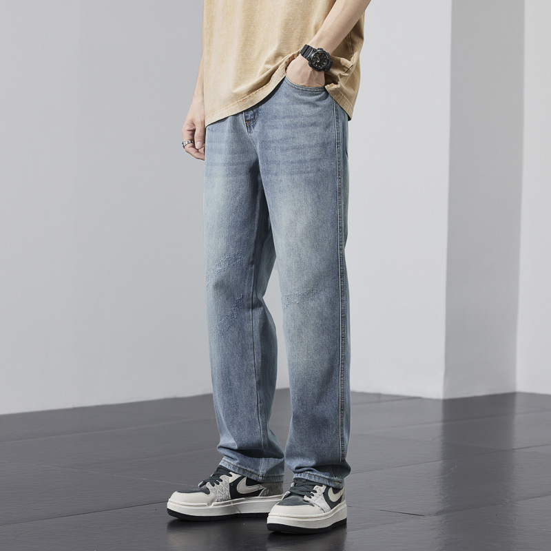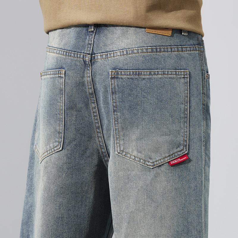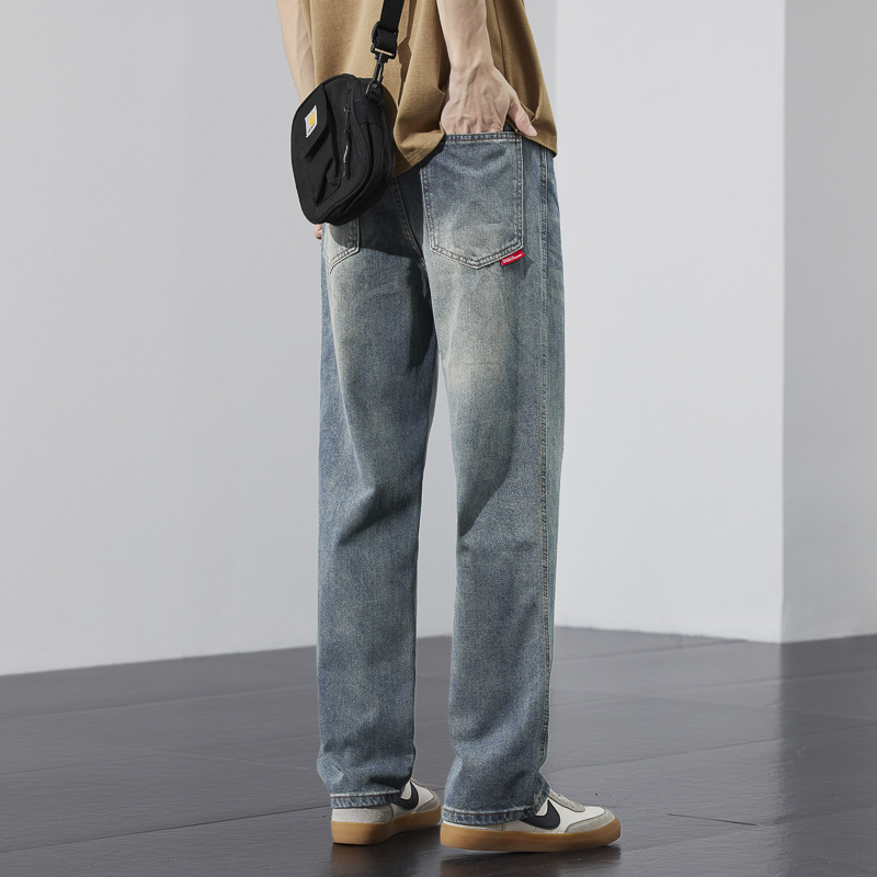 高品美式潮牌阔腿牛仔裤男士春季新款宽松直筒男装春秋休闲长