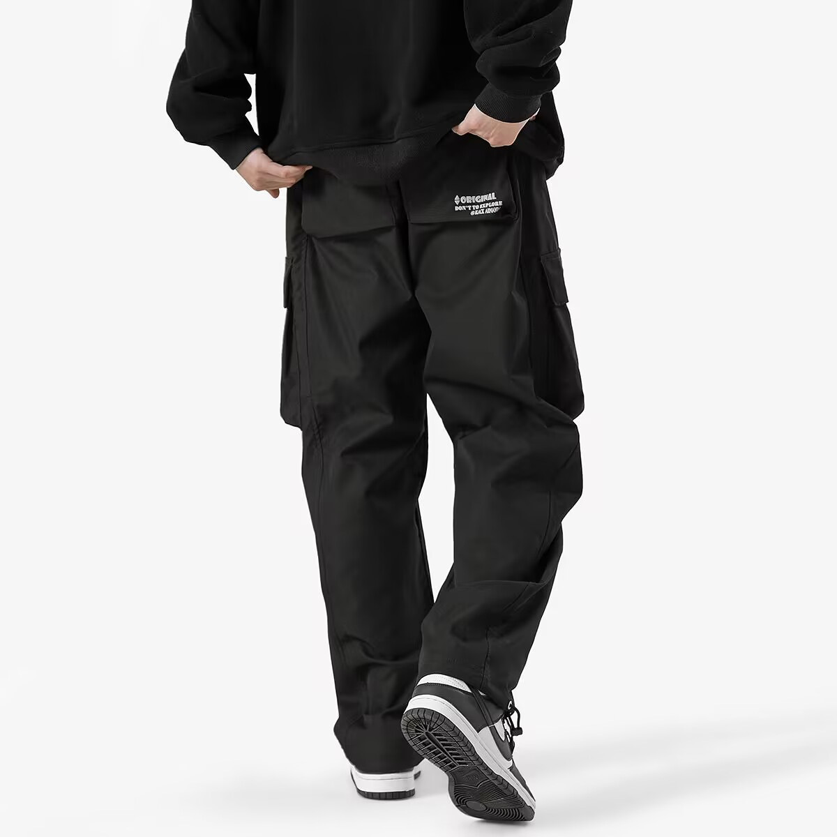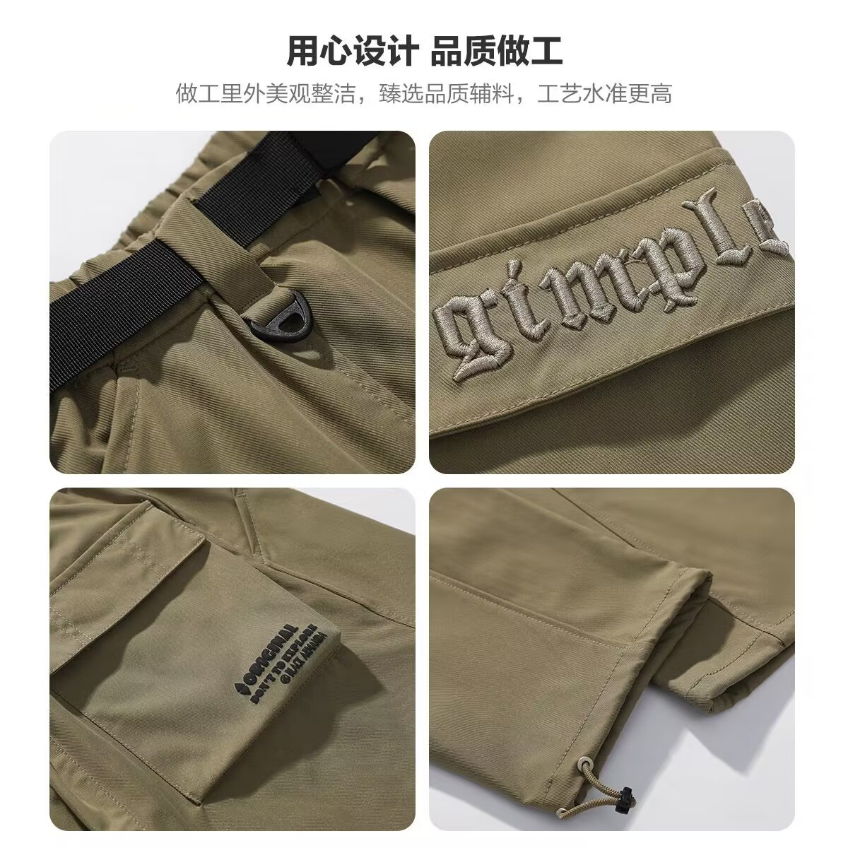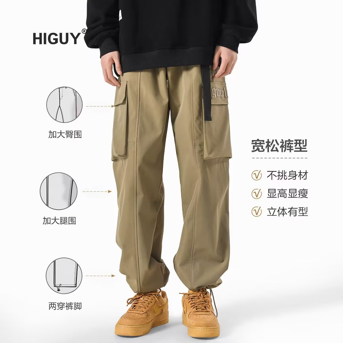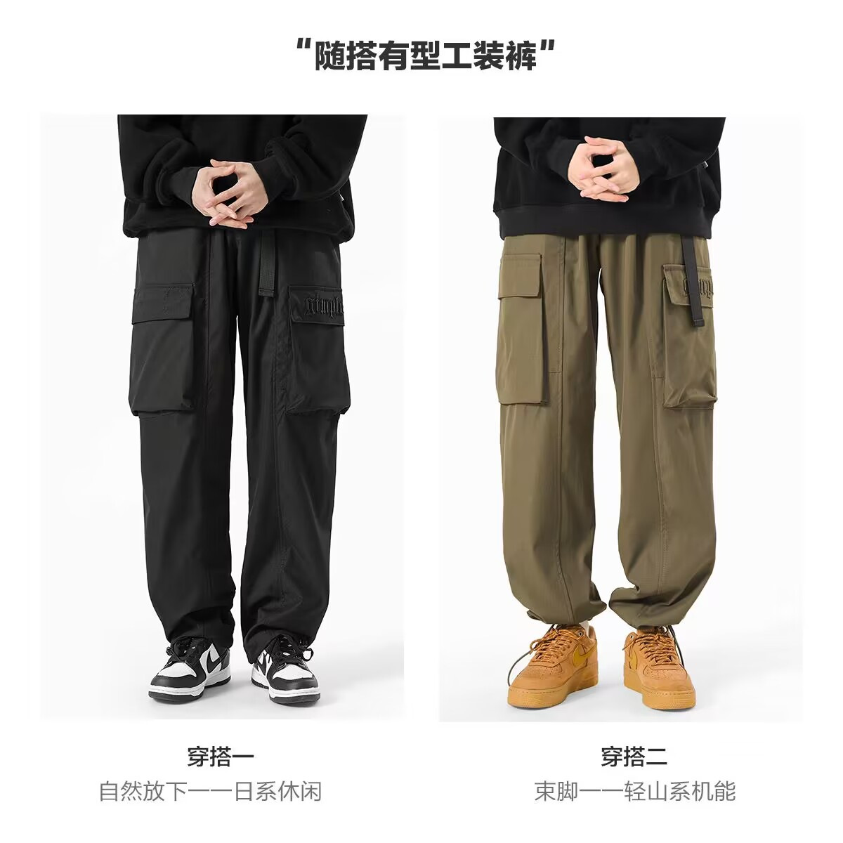 潮牌机能工装裤男春季美式复古抽绳束脚裤子潮牌宽松直筒休闲长裤