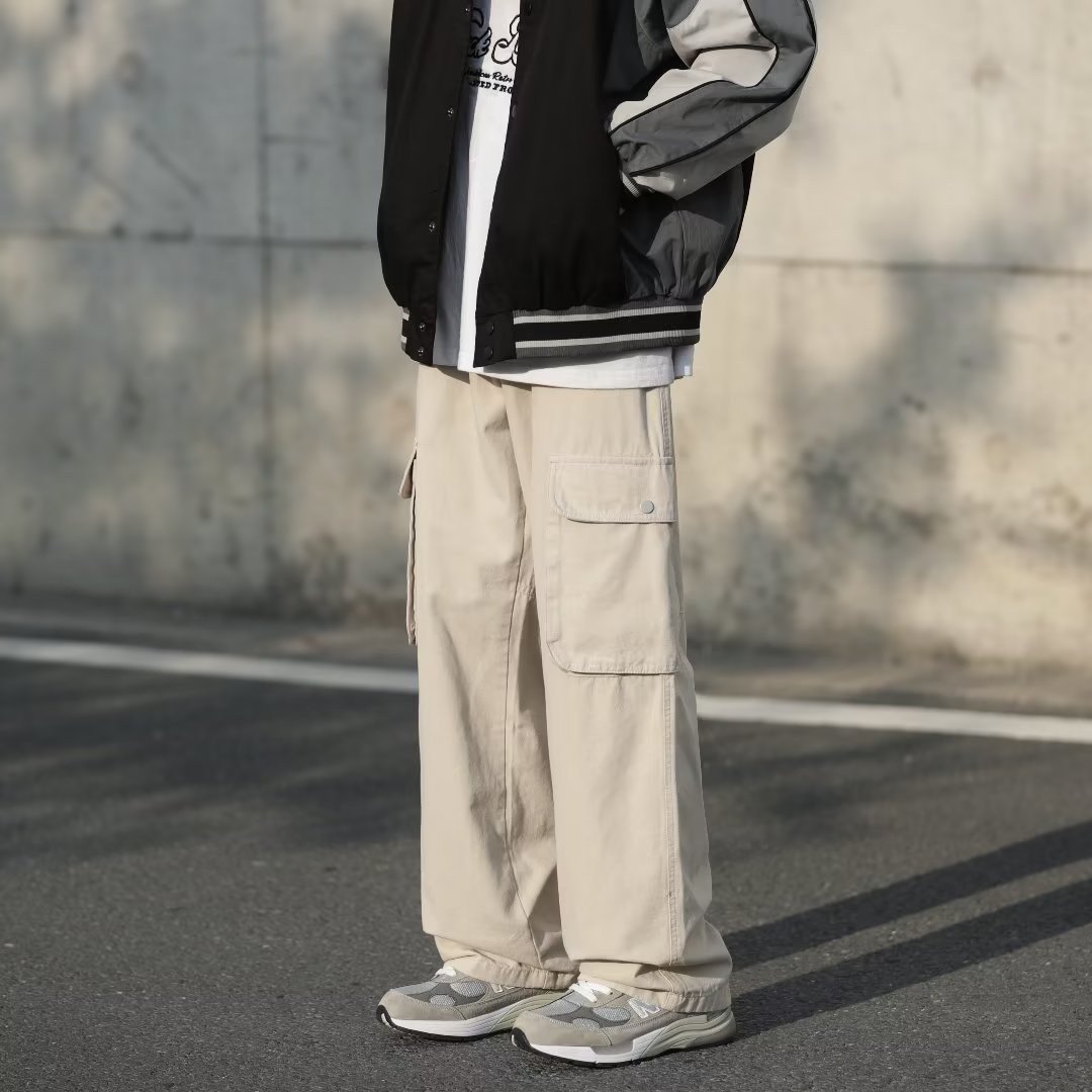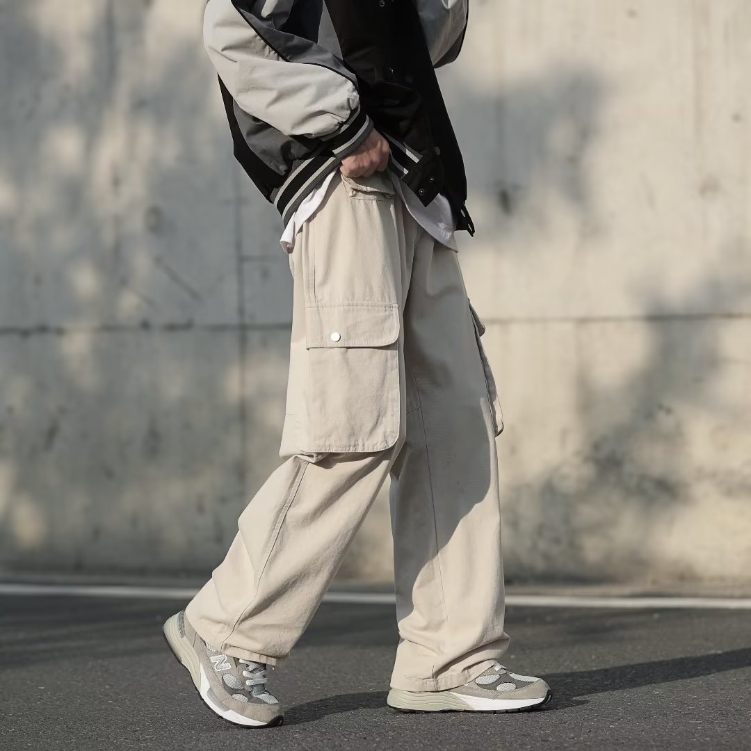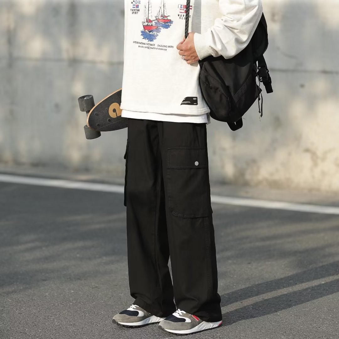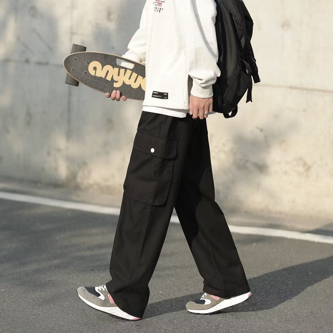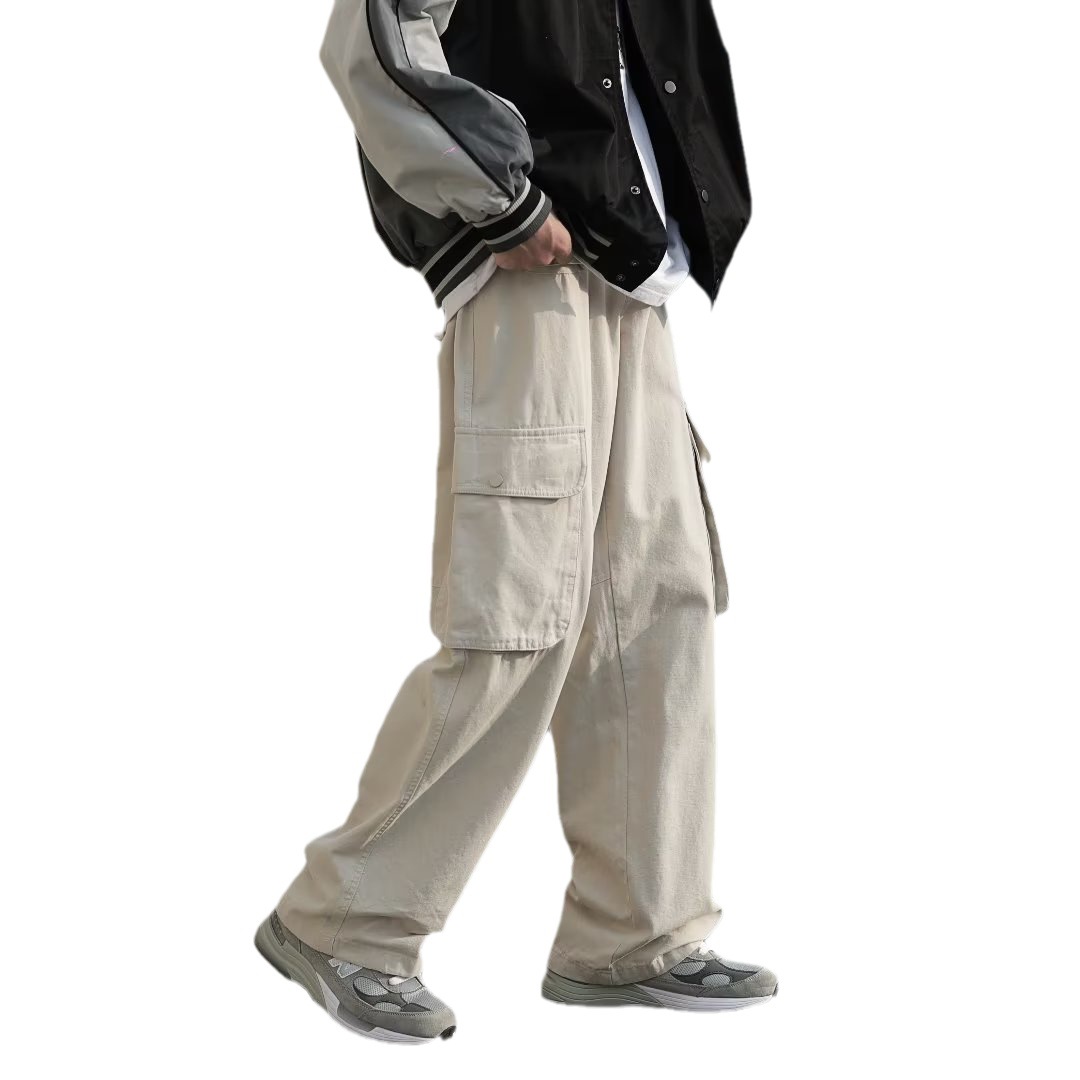 日系工装裤男春秋新款潮牌宽松阔腿休闲裤美式高街多口袋直筒裤子