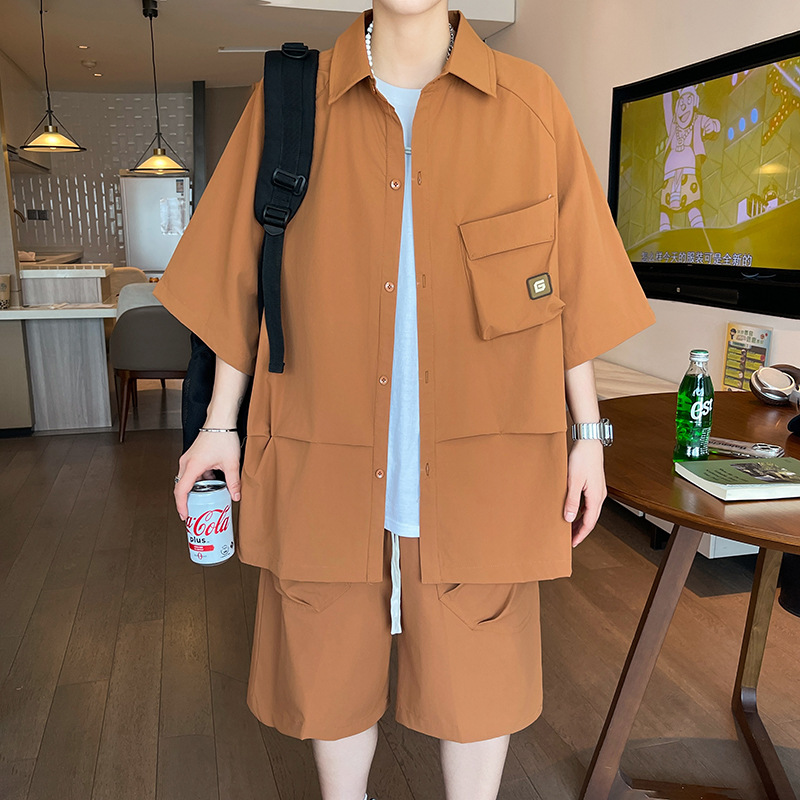 青少年潮流套装潮牌宽松休闲衬衫短裤两件套