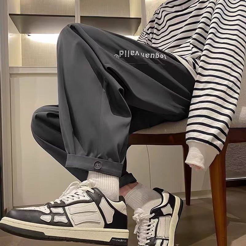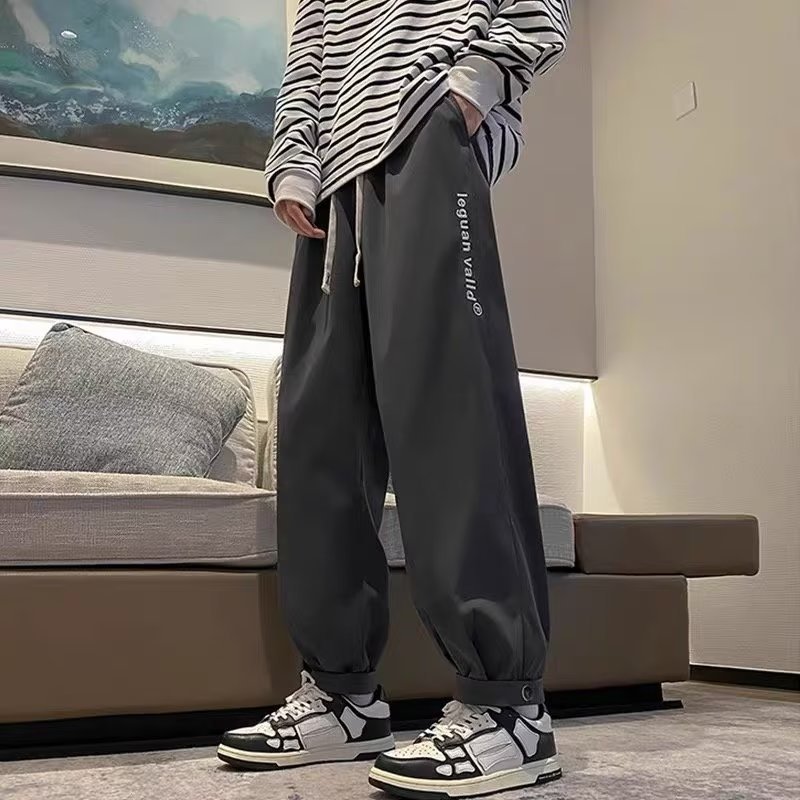 潮牌裤子男秋季宽松运动裤港风日系复古刺绣高街ins工装休闲长裤
