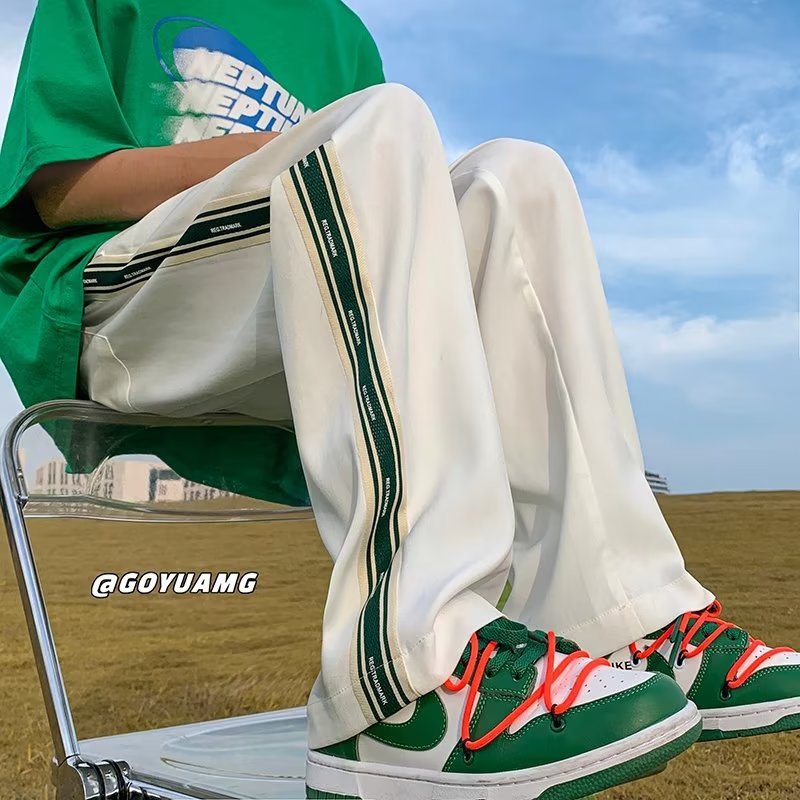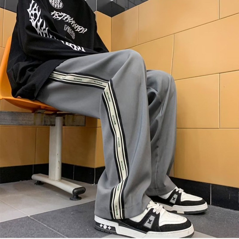 春秋季裤子男百搭港风直筒美式条纹裤子高街潮牌垂感宽松休闲长裤