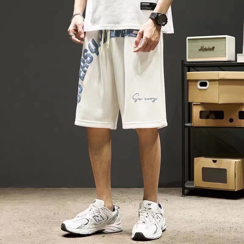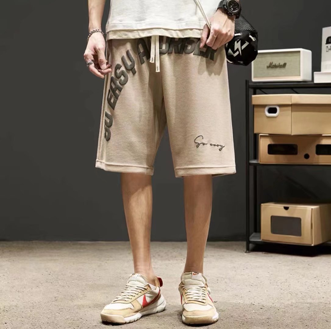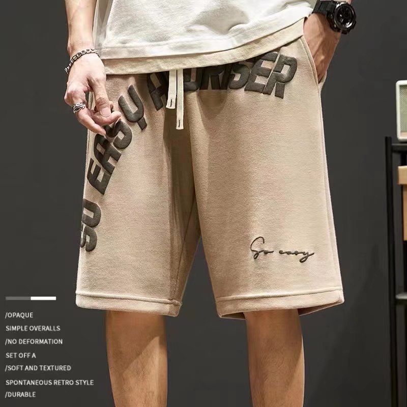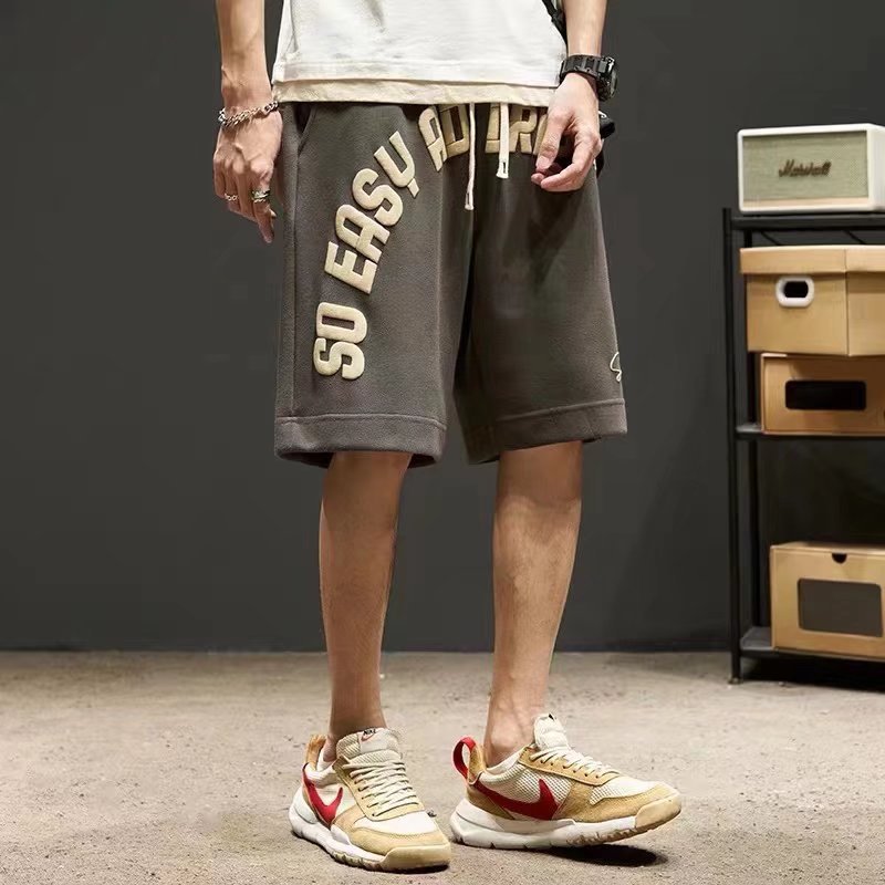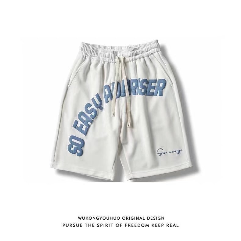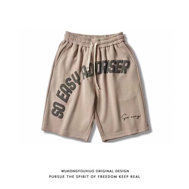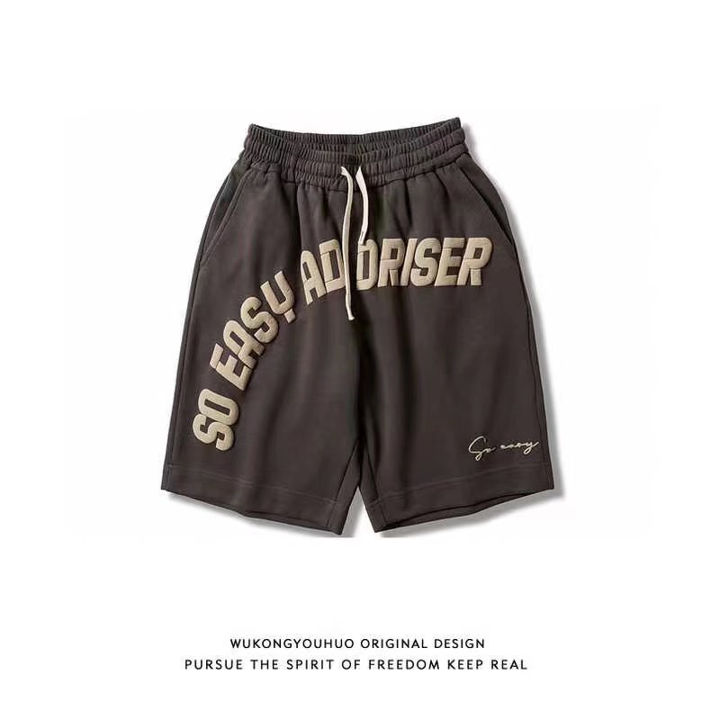 夏季美式高街发泡印花加大加胖港风五分裤休闲短裤情侣宽松运动裤