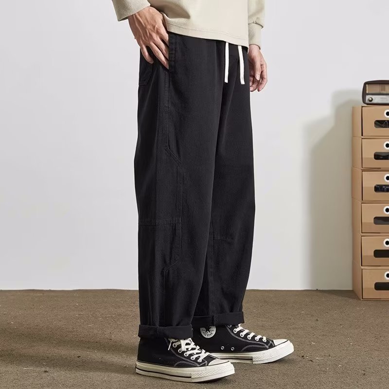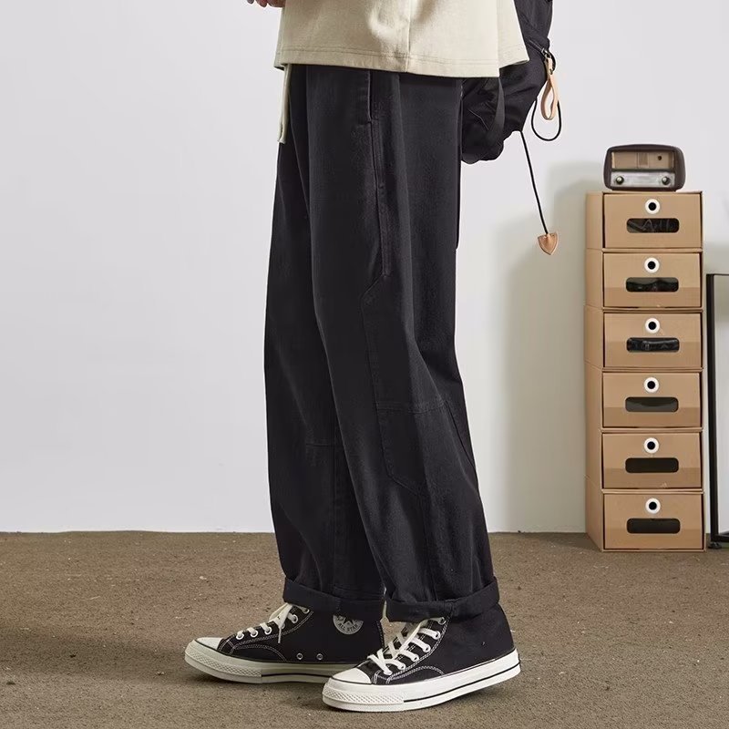 工装裤男春秋款潮牌直筒裤日系简约阔腿裤男生九分裤男士裤子男款