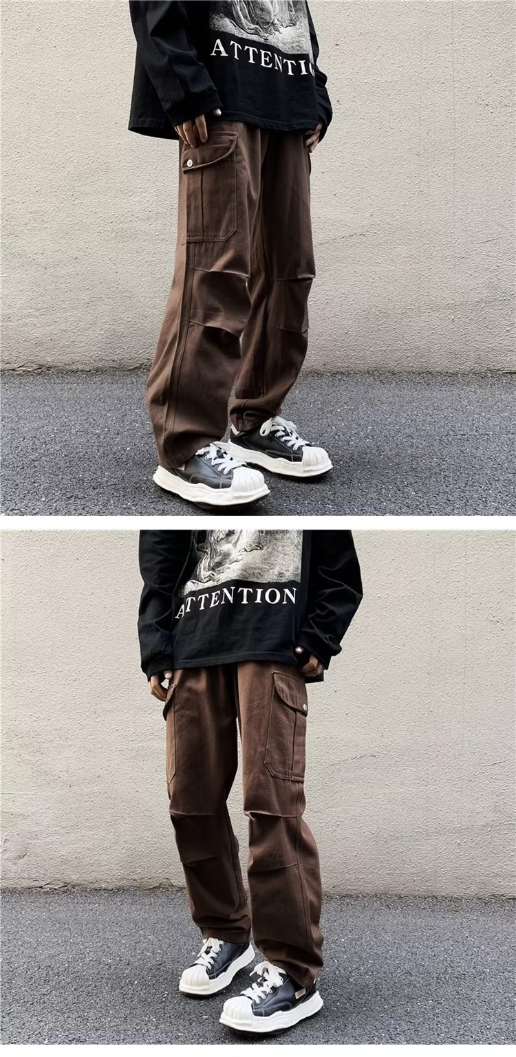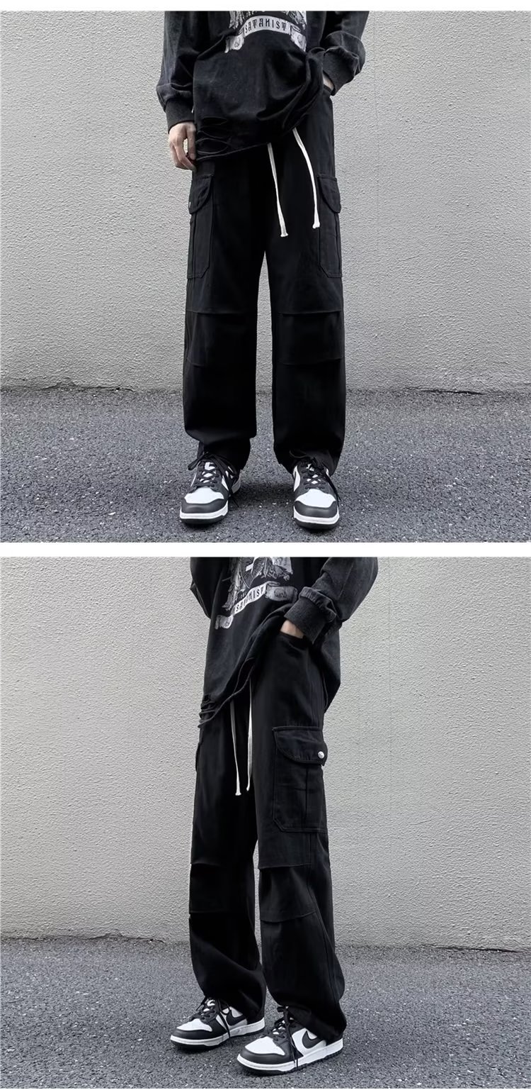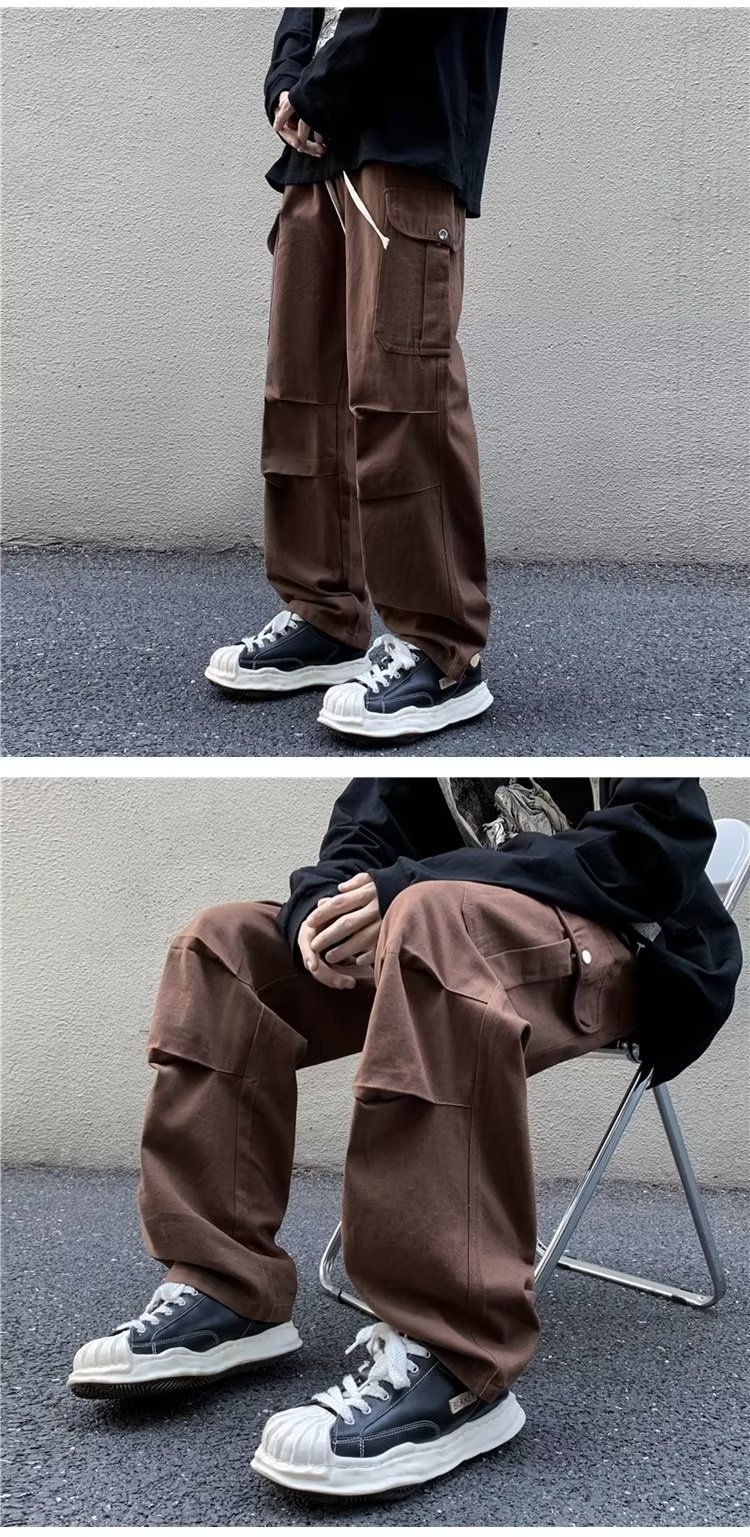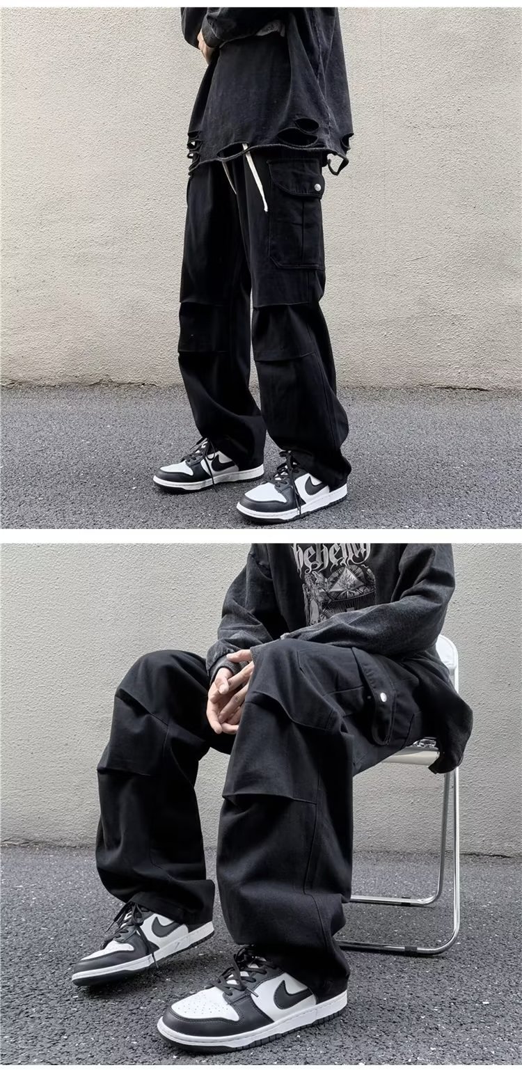 日系多口袋工装裤子男秋季潮牌宽松直筒休闲裤嘻哈复古设计感长裤