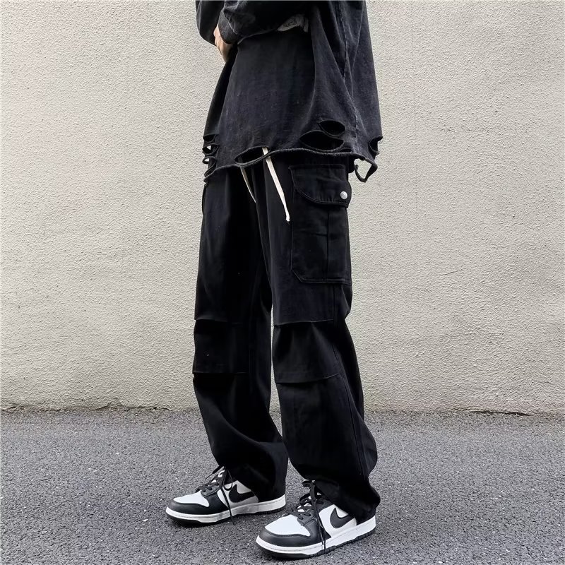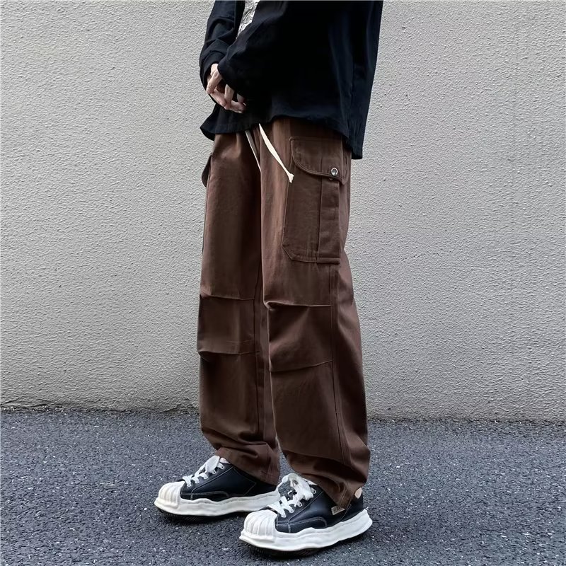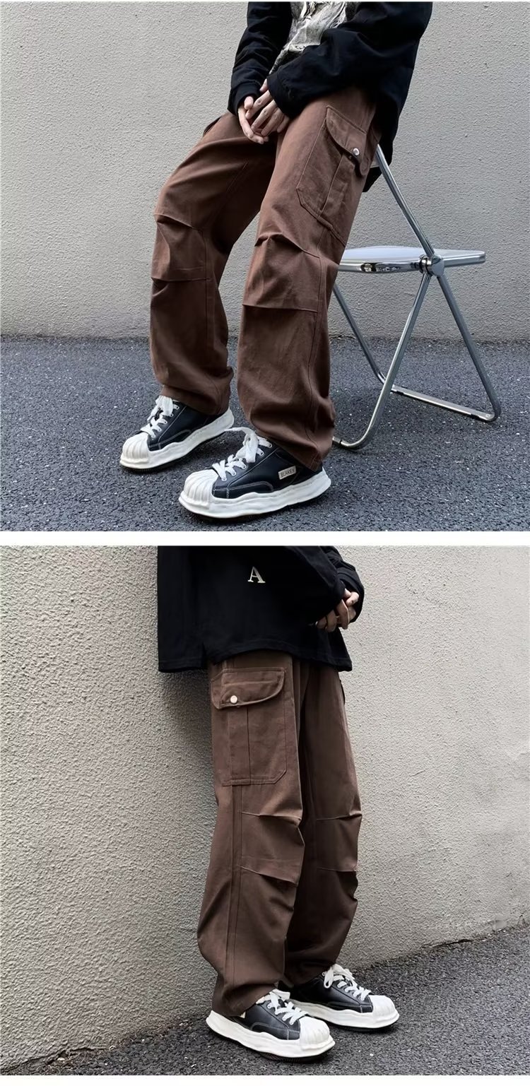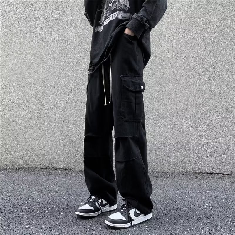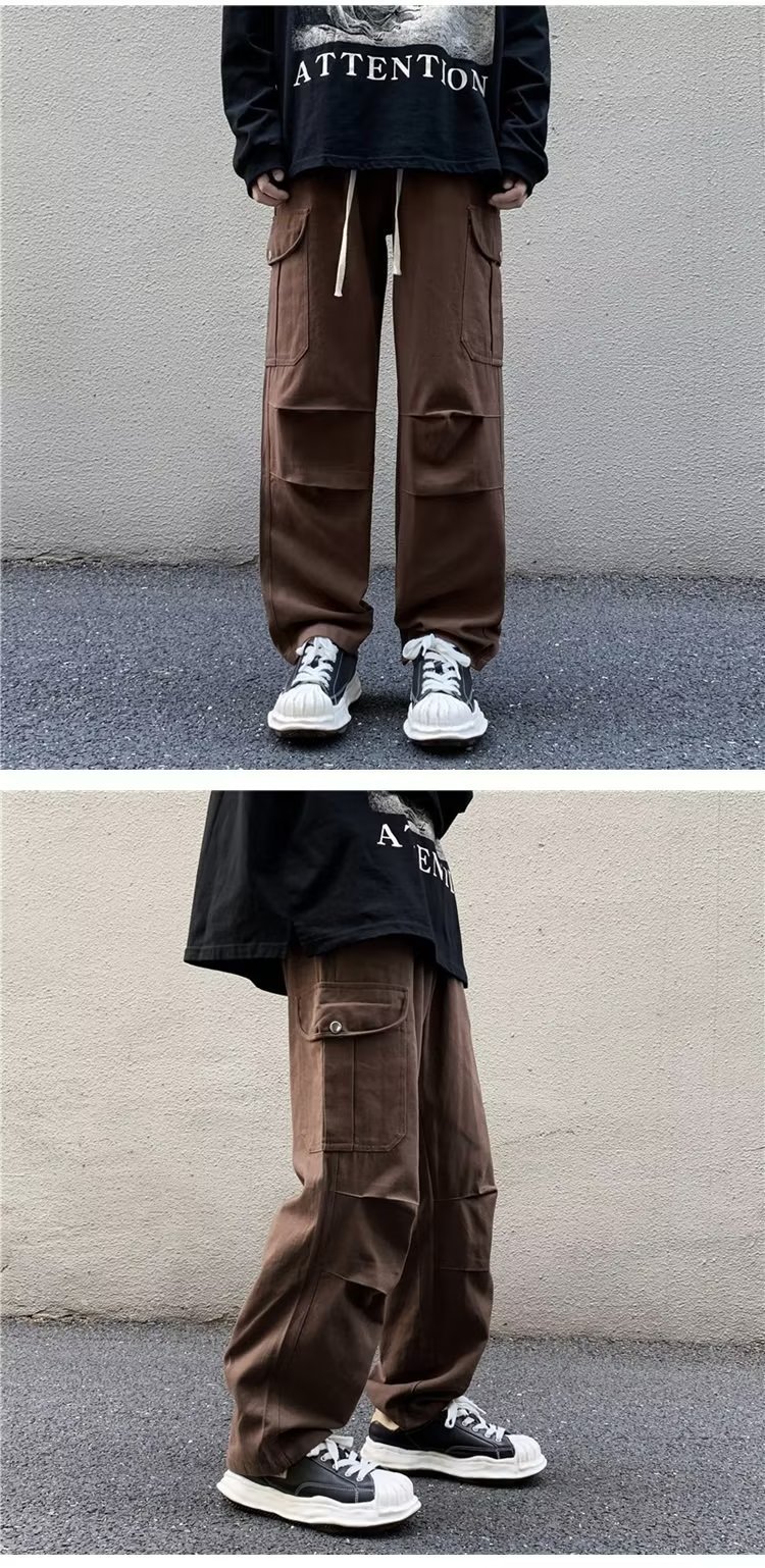 日系多口袋工装裤子男秋季潮牌宽松直筒休闲裤嘻哈复古设计感长裤