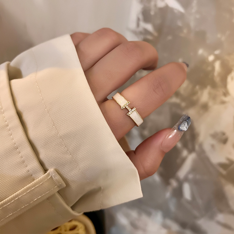 H字母滴釉开口可调节戒指女小众设计感轻奢镶钻食指指环百搭戒子