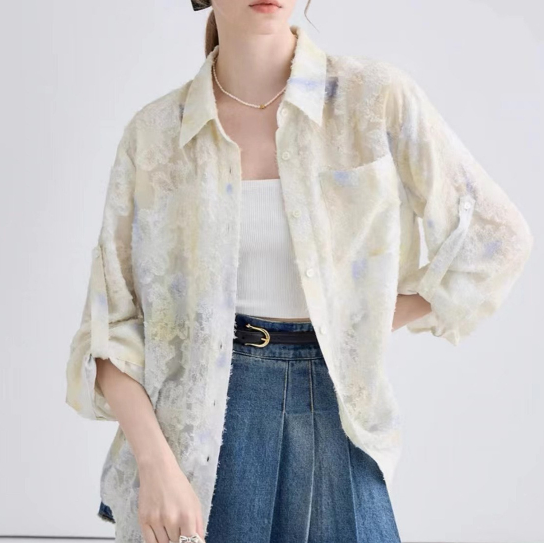 提花衬衫女夏新款设计感小众宽松显瘦上衣ins潮