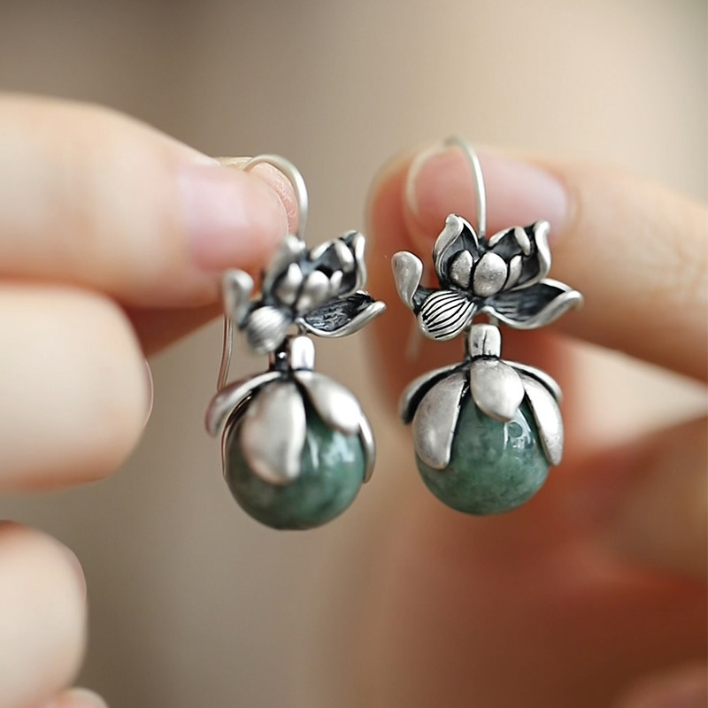 925银复古做旧民族风好事莲莲圆珠荷花耳环耳坠女气质百搭感