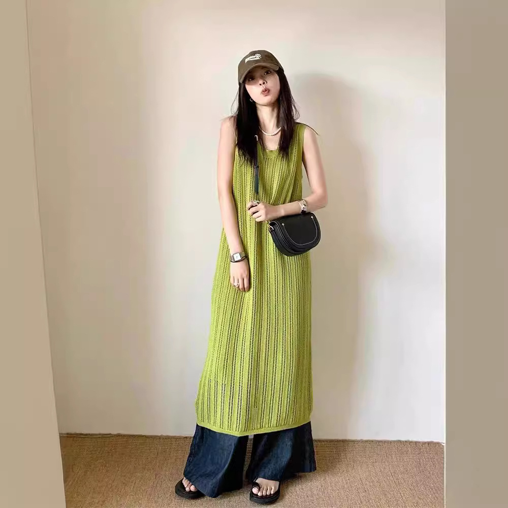 夏季网红爆款海边度假洋气减龄显瘦绿色针织背心连衣裙新款女