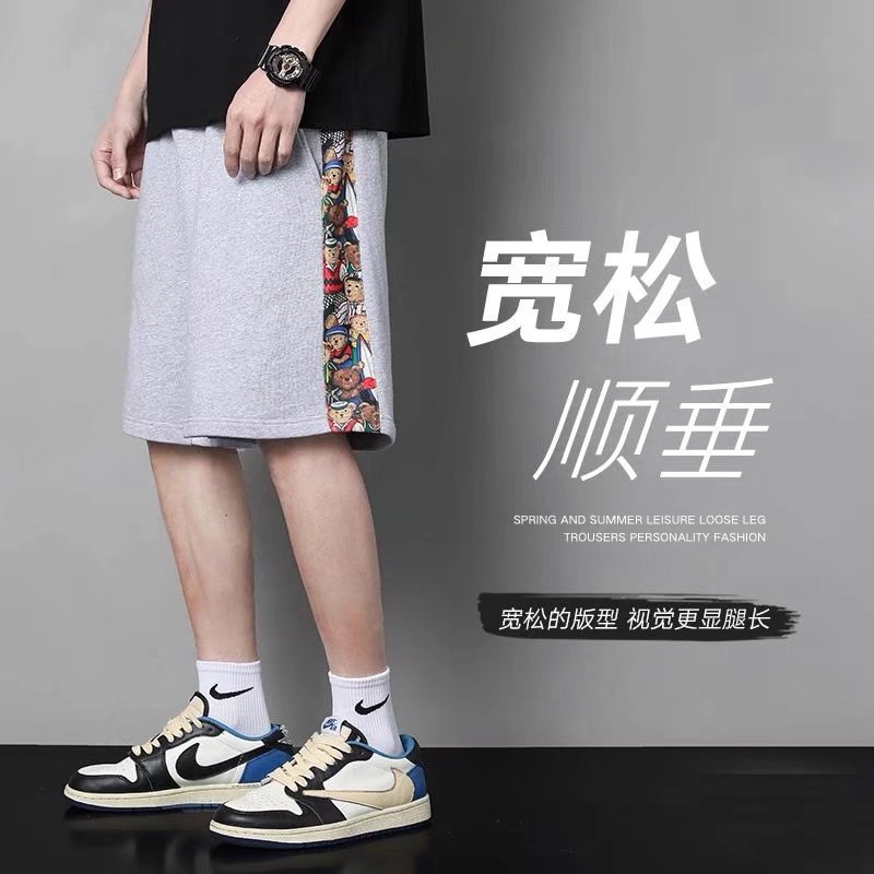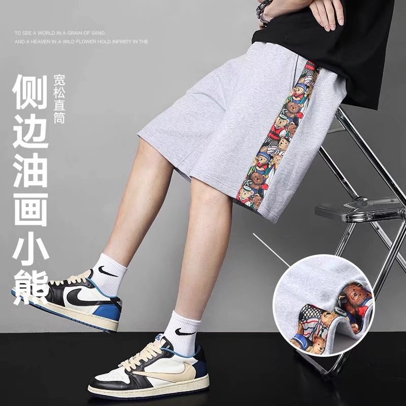 侧边小熊短裤男夏季ins潮流小众设计感休闲裤男士宽松运动五分裤