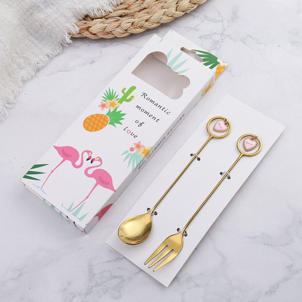 304创意勺子叉子 心形咖啡搅拌勺甜品叉勺 婚庆伴手礼 叉勺礼盒装