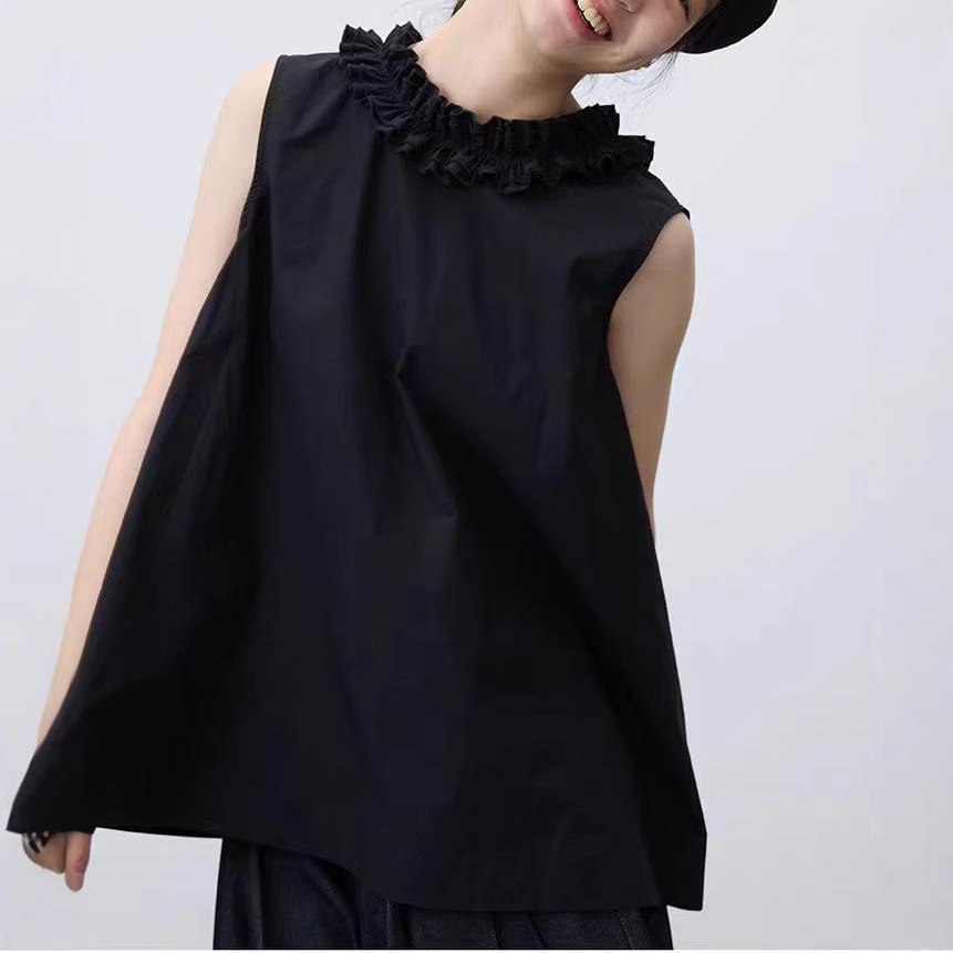 品质推荐~夏季女纯色黑色两穿百搭气质高级质感无袖衬衫上衣