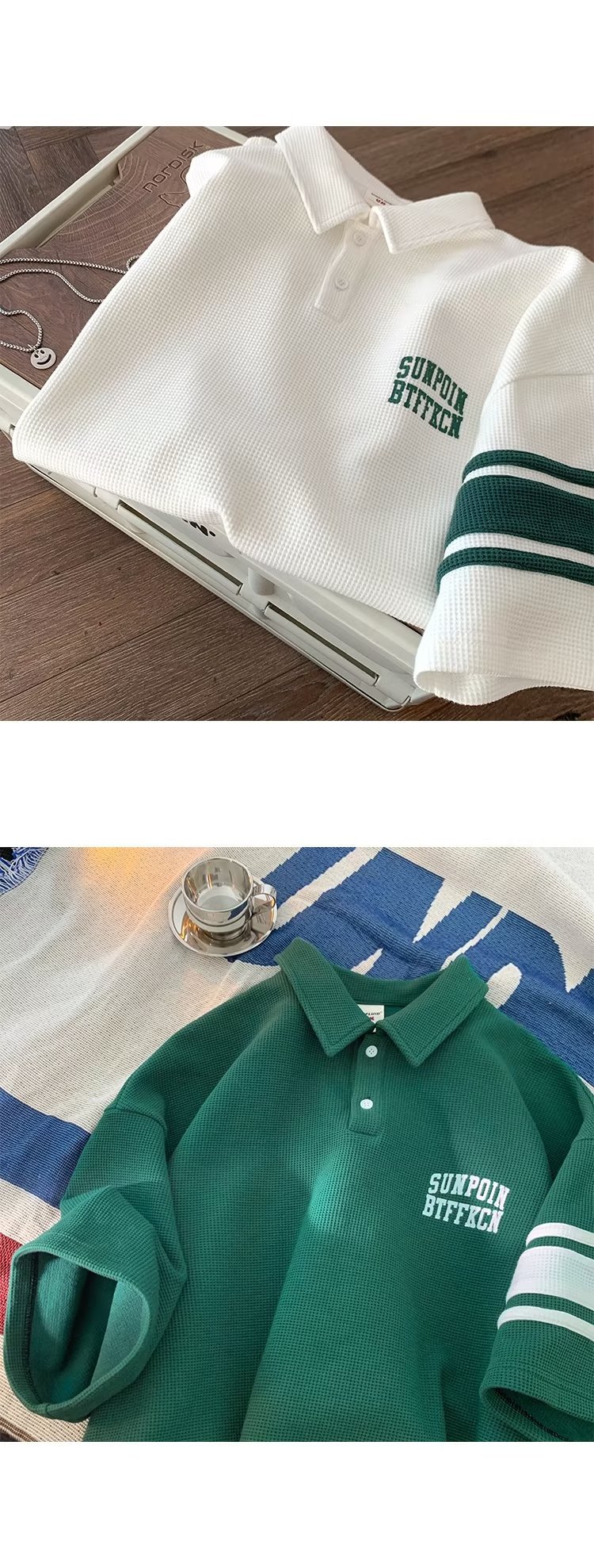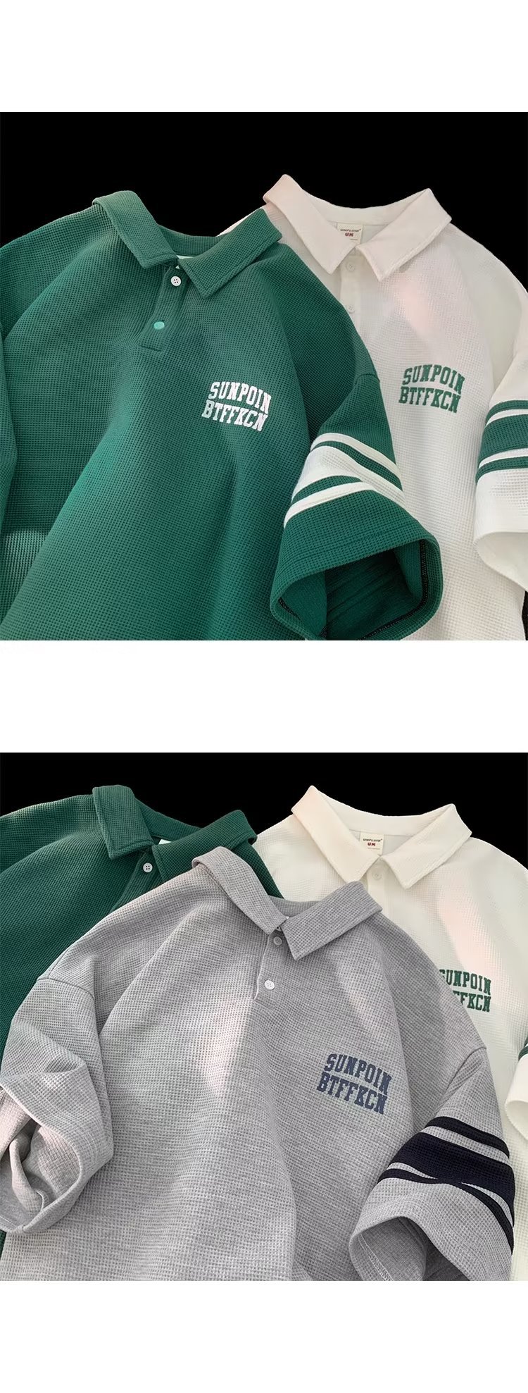 短袖polo衫男夏季华夫格ins潮牌港风t恤宽松百搭潮流撞色半袖上