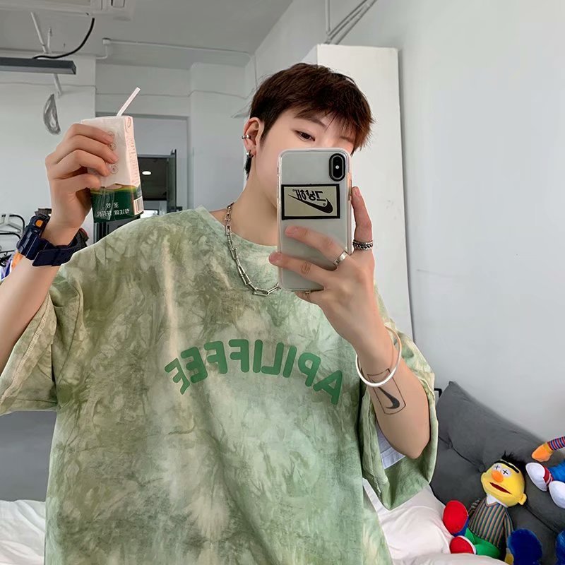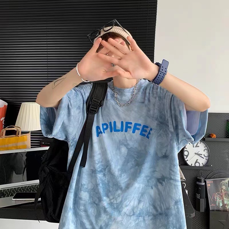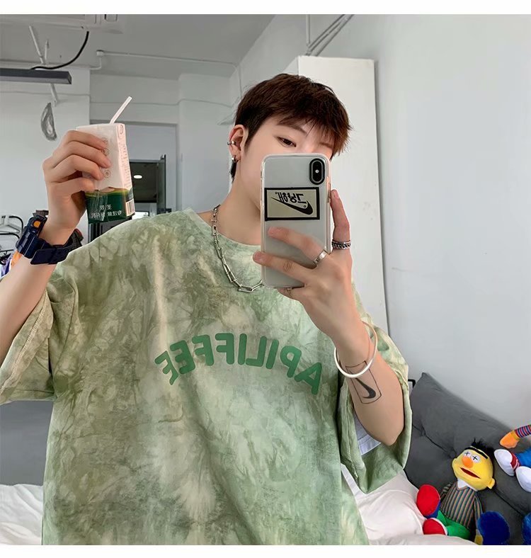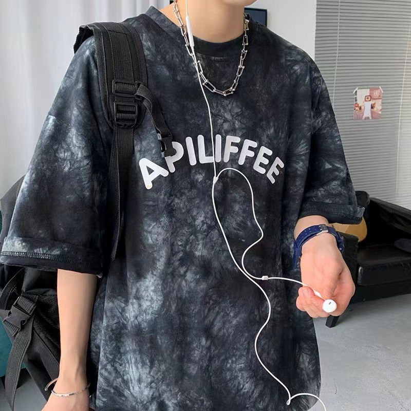 黑色扎染短袖t恤男潮牌夏天冰凉ins潮流港风美式国潮高街衣服