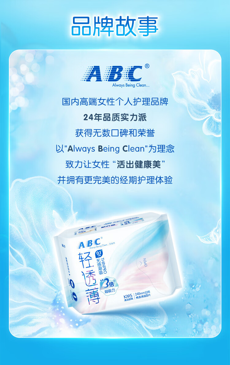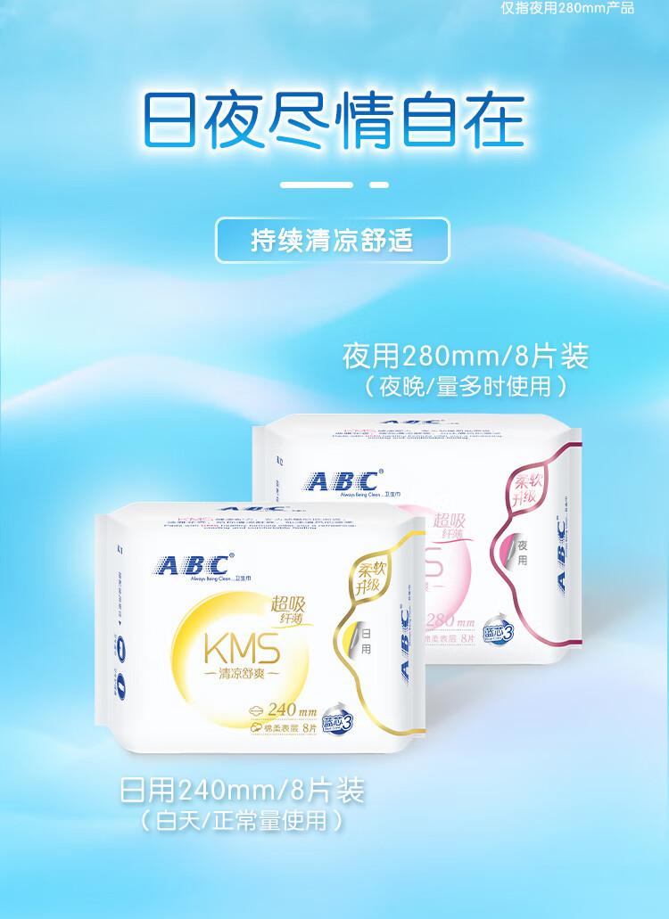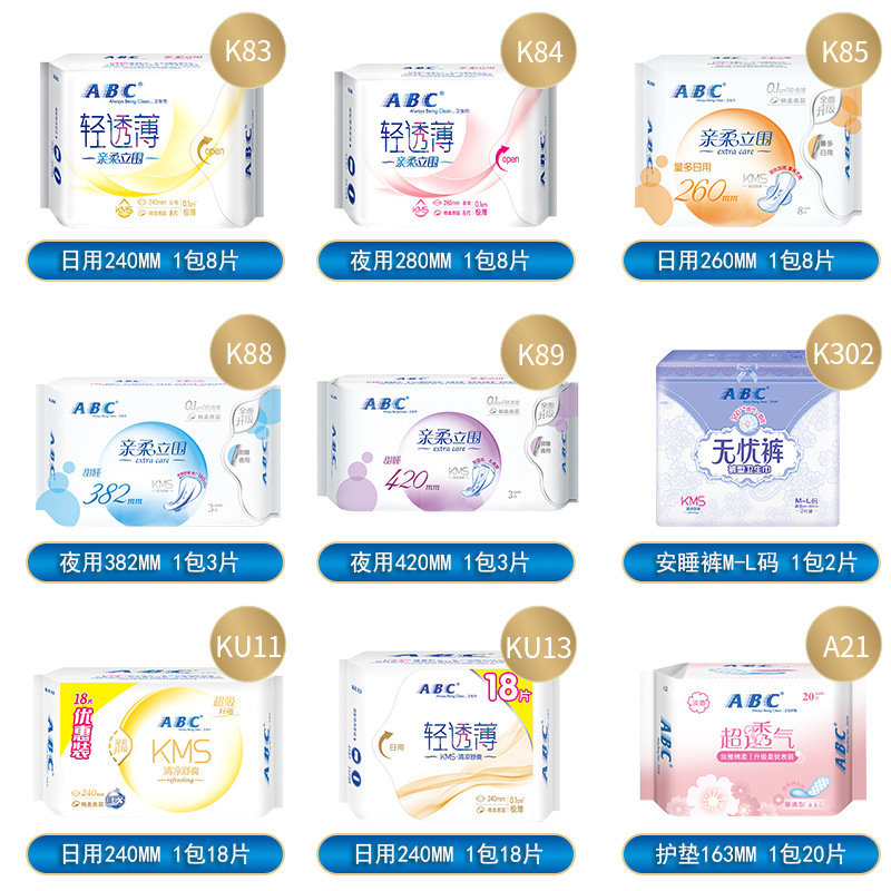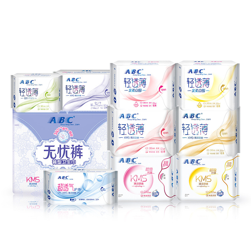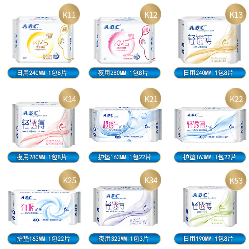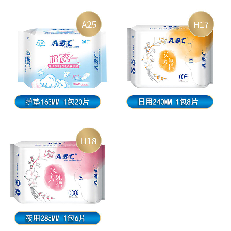 ABC卫生巾正品批发棉柔超薄日用夜用姨妈巾护垫家用姨妈巾安睡裤