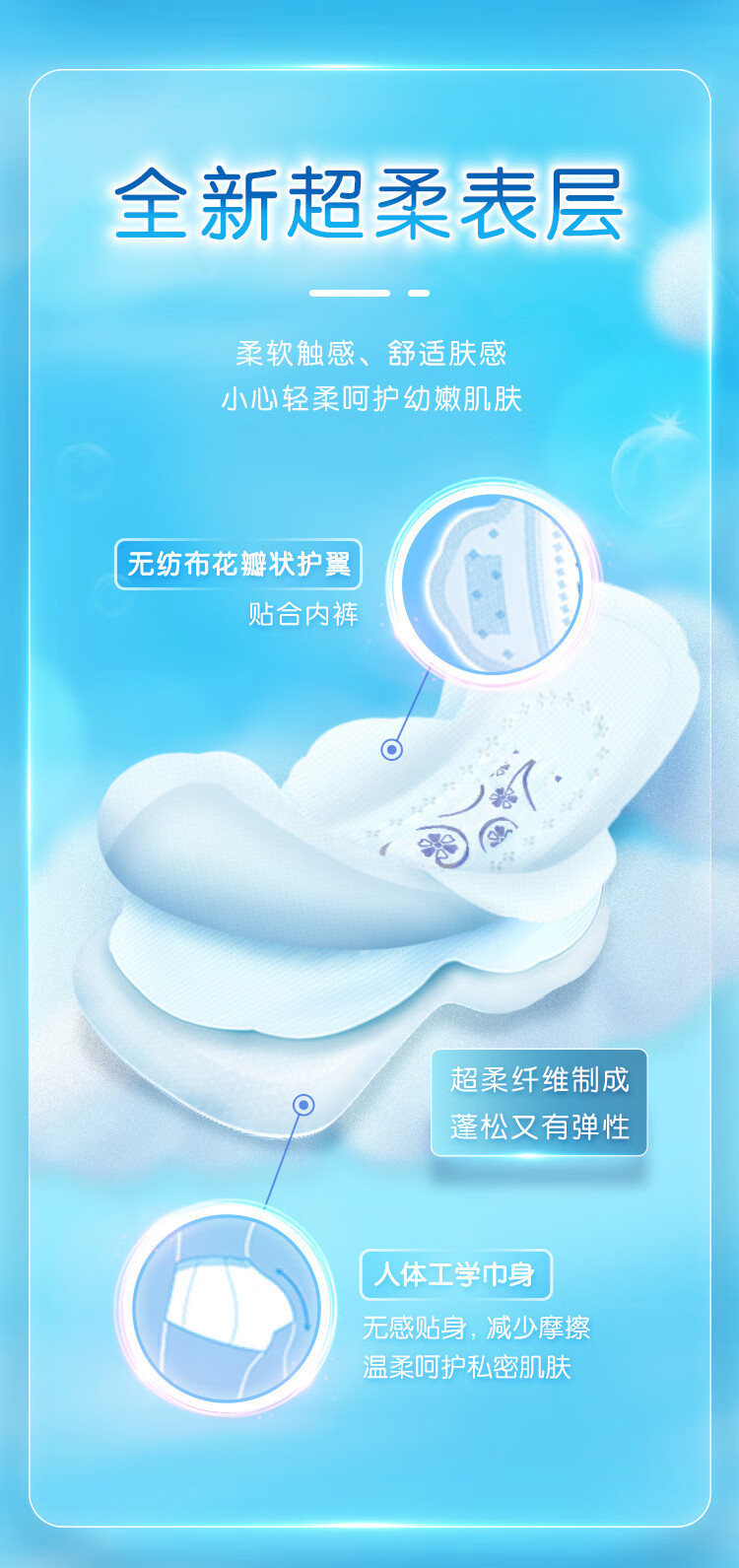 - 【3片】夜用亲柔立围加长382mm卫生巾-K88