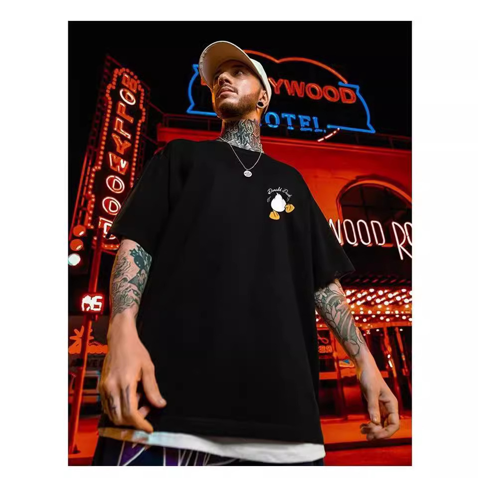 欧美街头潮牌恶搞鸭子t恤男ins潮流情侣装大码加肥加大号国潮短袖