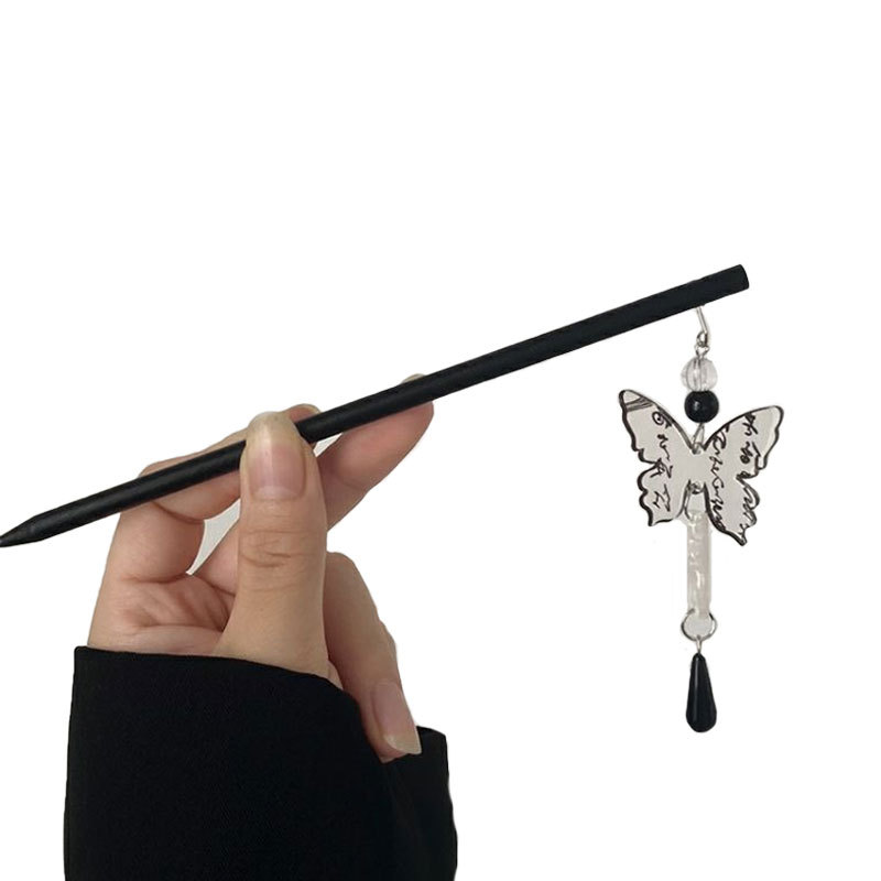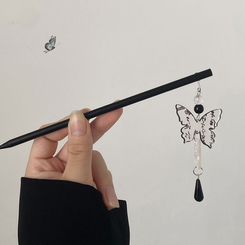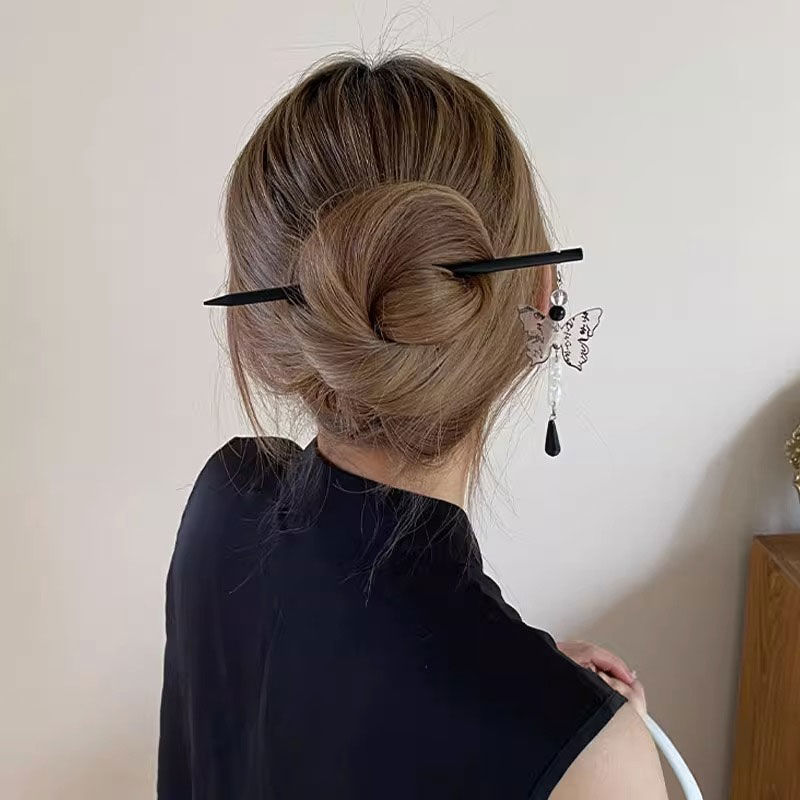 水墨蝴蝶流苏古风发簪高级感新中式盘发簪子简约现代小众设计头饰