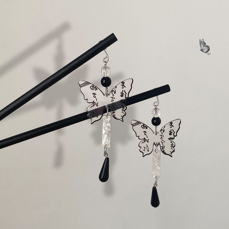水墨蝴蝶流苏发簪
