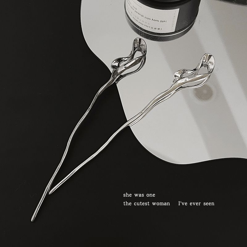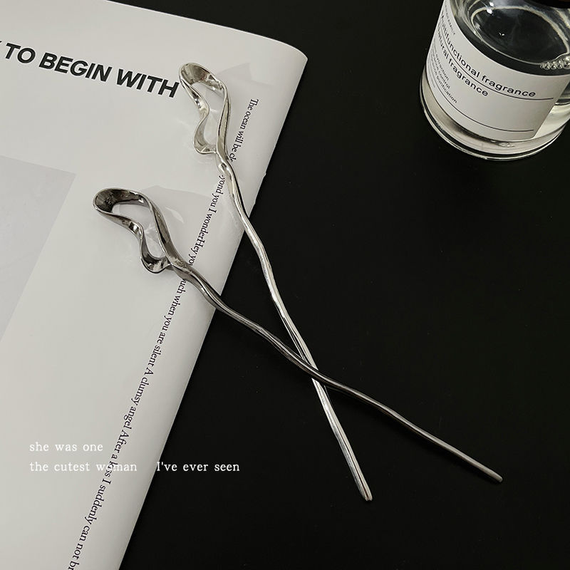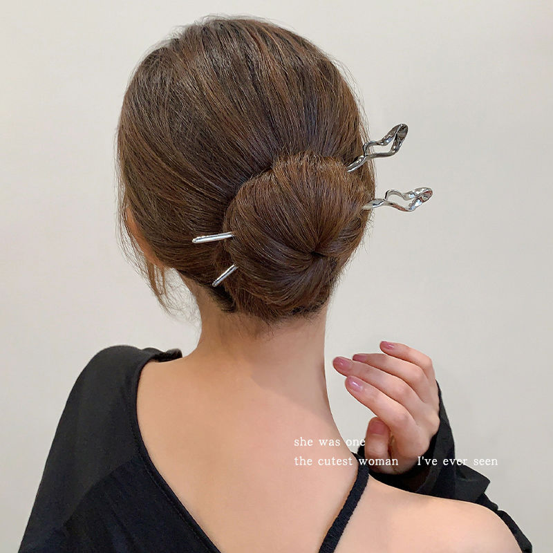 新中式银色金属发簪现代简约后脑勺盘发高级感发钗子日常簪子头饰