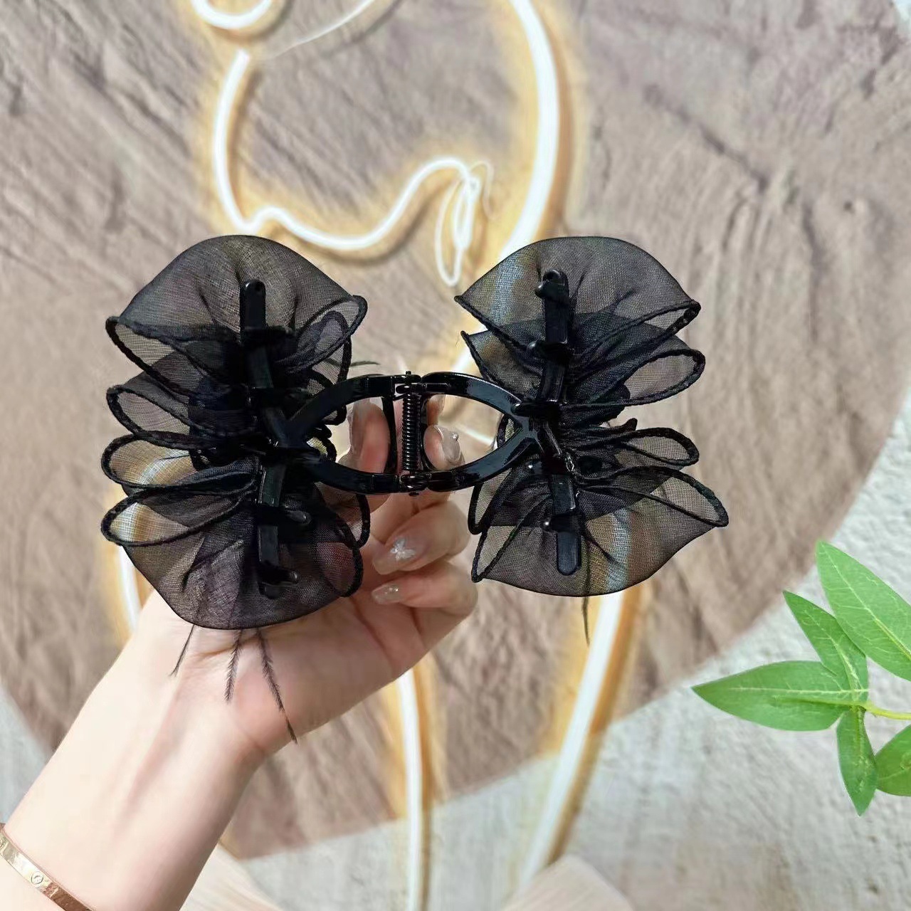 款超仙网红轻奢高级感时尚百搭黑色气质玫瑰花羽毛发夹头饰女