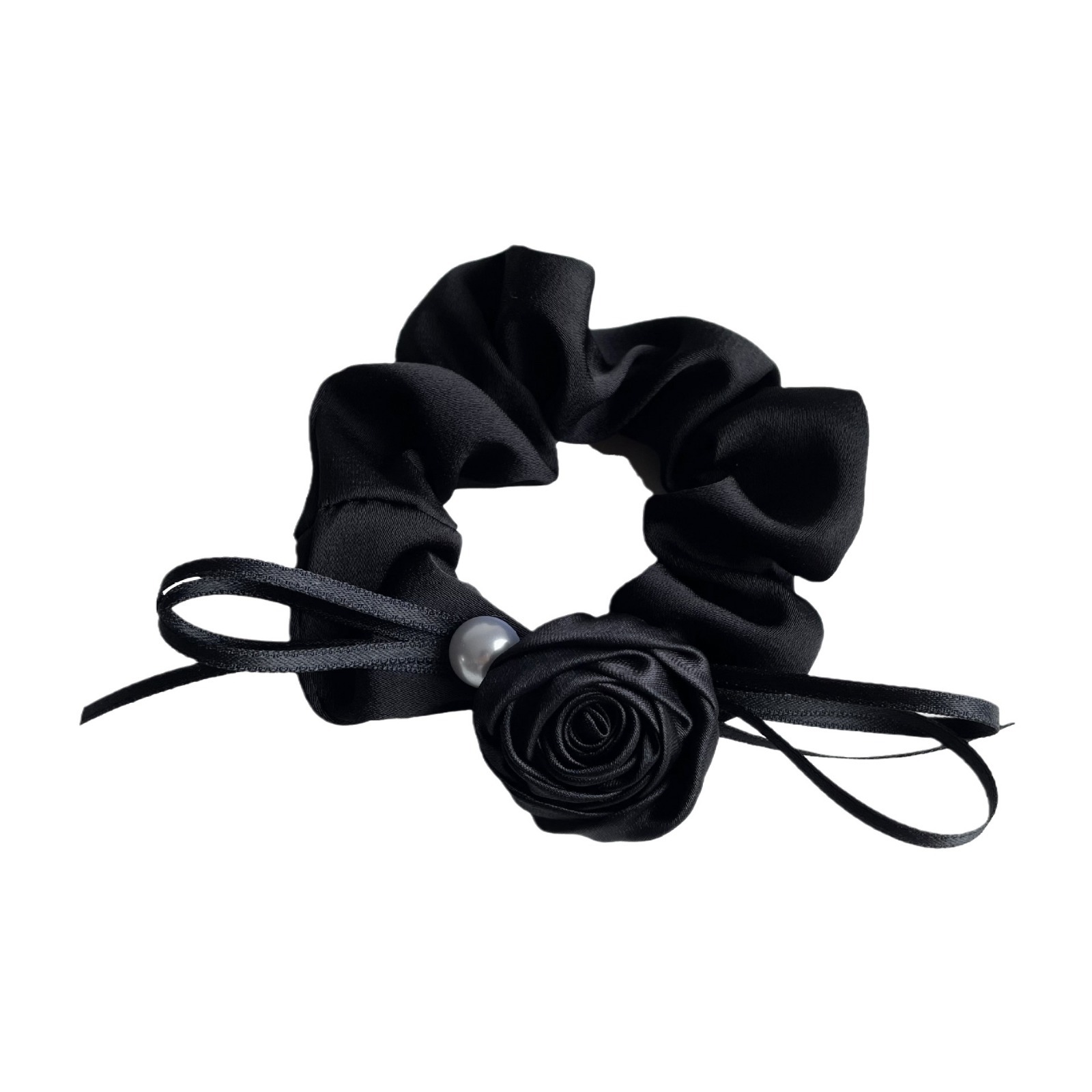 复古立体玫瑰花珍珠吊坠小肠发圈女温柔气质年新款头绳发饰