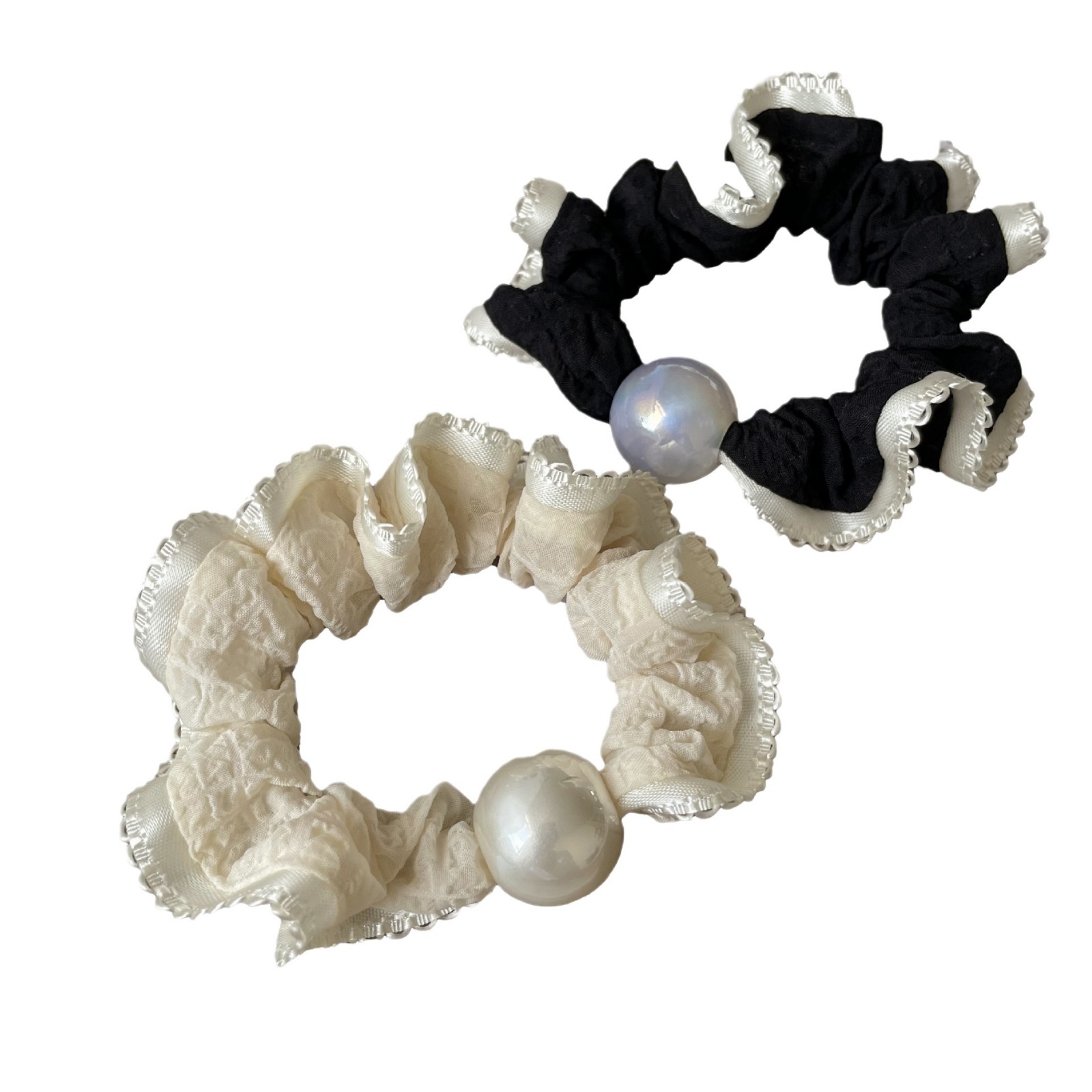 清新蕾丝花边珍珠小肠发圈复古气质马尾皮筋头绳时尚简约扎发头饰