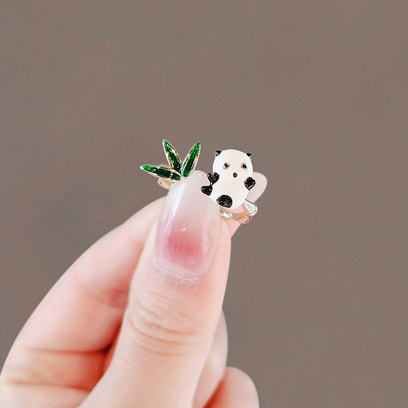 新中式国风熊猫竹叶戒指女小众设计感个性食指戒开口戒新款
