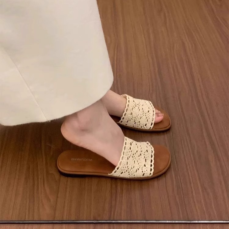 波西米亚民族风平底露趾一字拖鞋女夏外穿海边度假配裙子沙滩凉拖