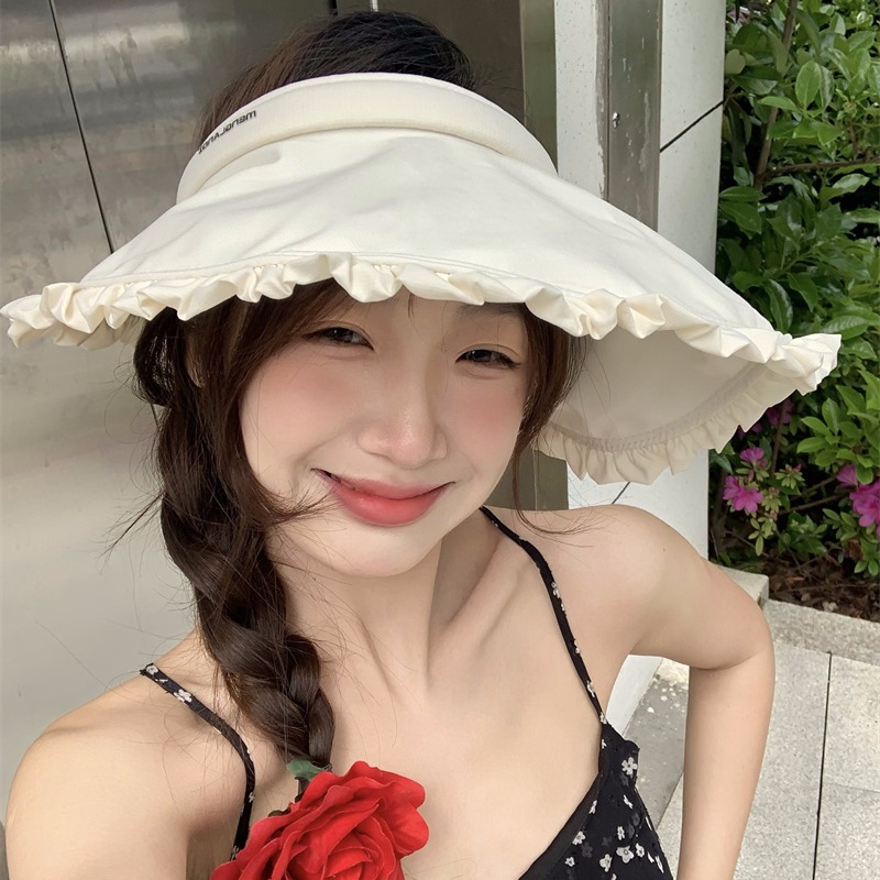 户外遮阳帽女防晒帽防紫外线夏季休闲荷叶边空顶帽子大檐太阳帽潮