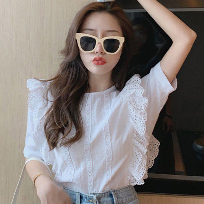 木耳边衬衫女法式白色短袖女装夏季新款设计感小众时尚洋气上衣