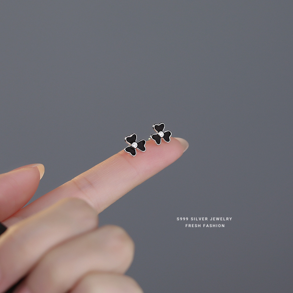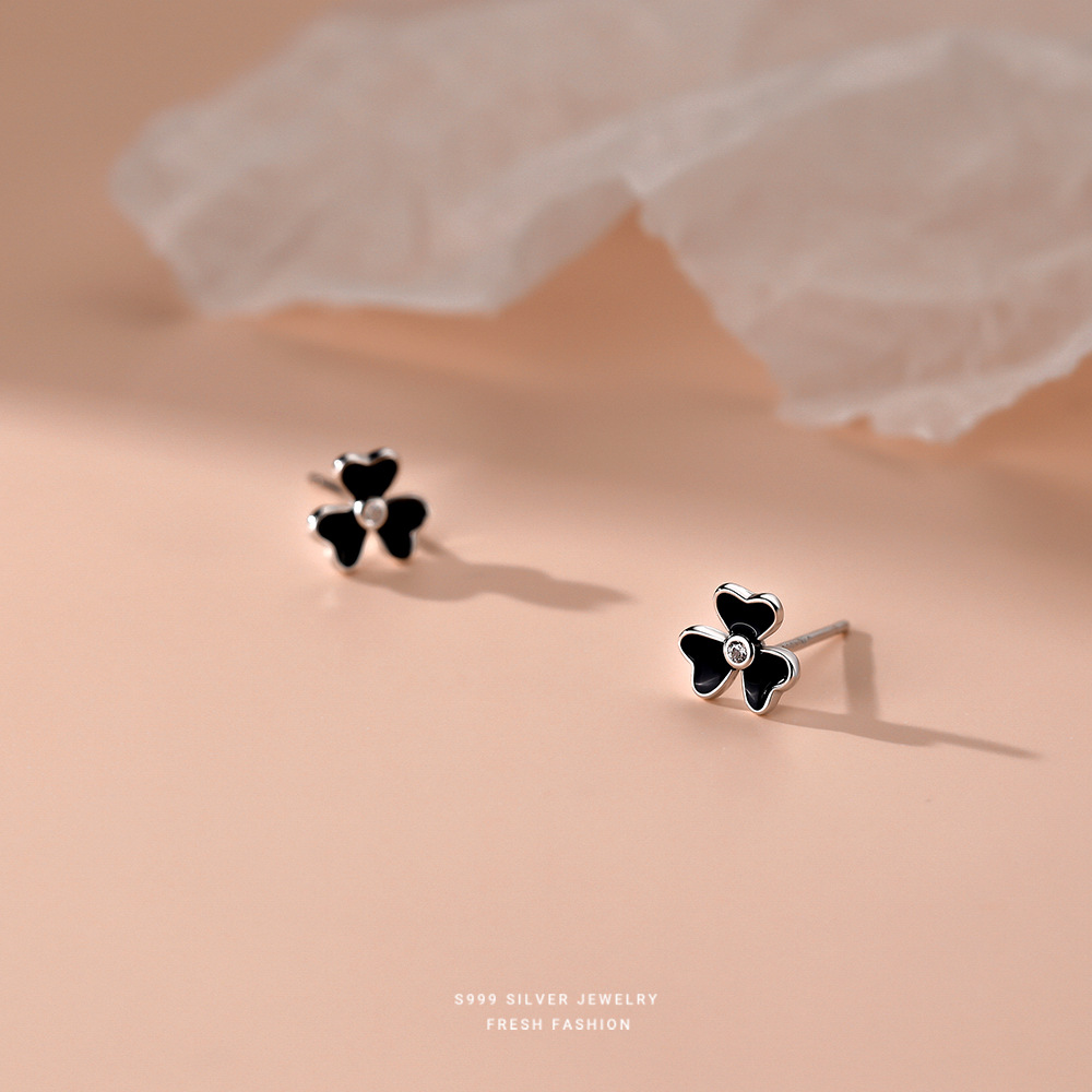 s999足银滴胶三叶草耳钉男女简约气质百搭可爱养耳洞纯银耳饰