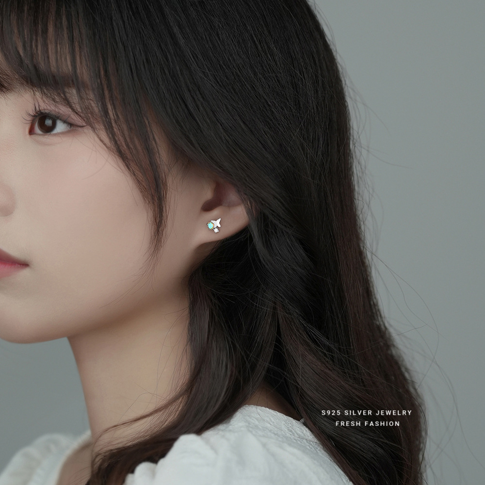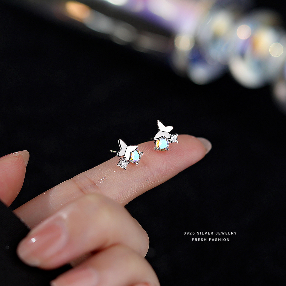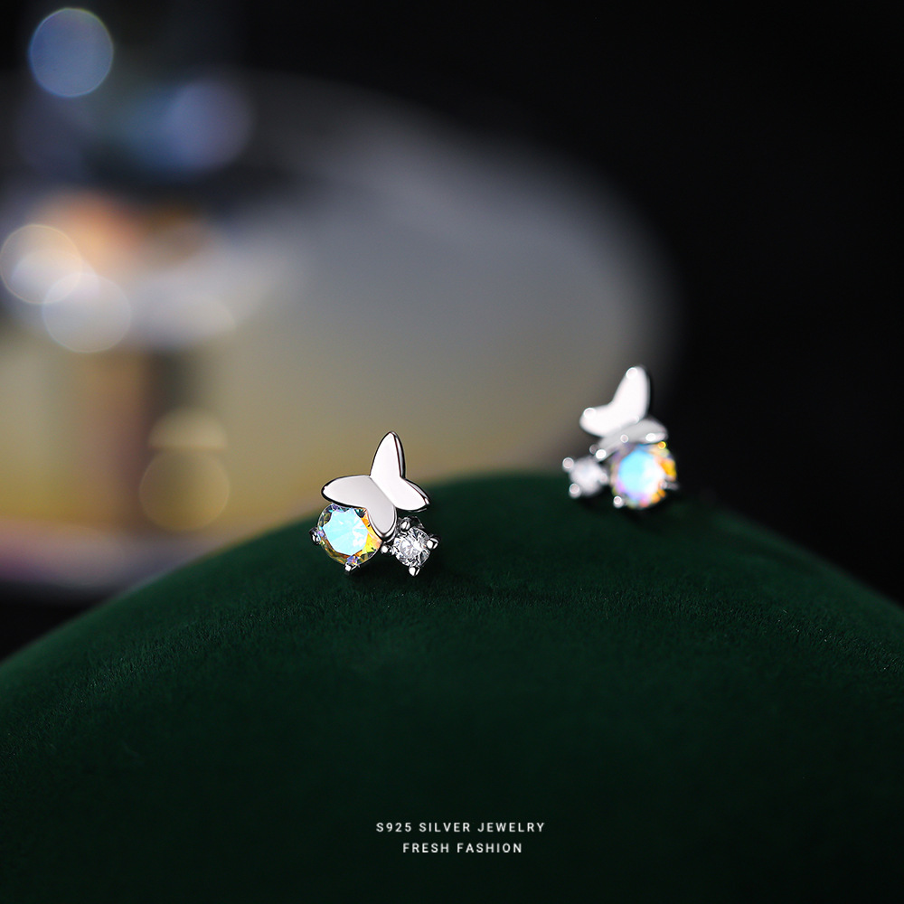 s925纯银原创彩色闪钻蝴蝶耳钉女韩版超闪轻奢小众轻奢感耳饰耳环