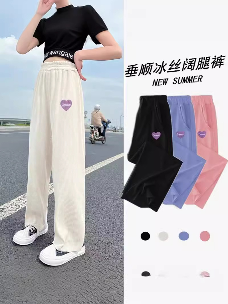 女童夏季洋气冰丝裤儿童休闲阔腿运动裤中大童直筒防蚊裤跨境