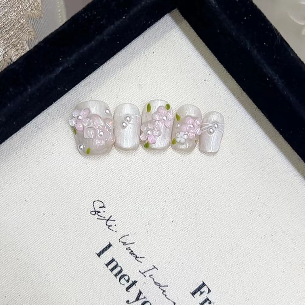 玫瑰故事纯手工精品穿戴甲细腻法式猫眼手绘玫瑰光疗甲亦玫同款