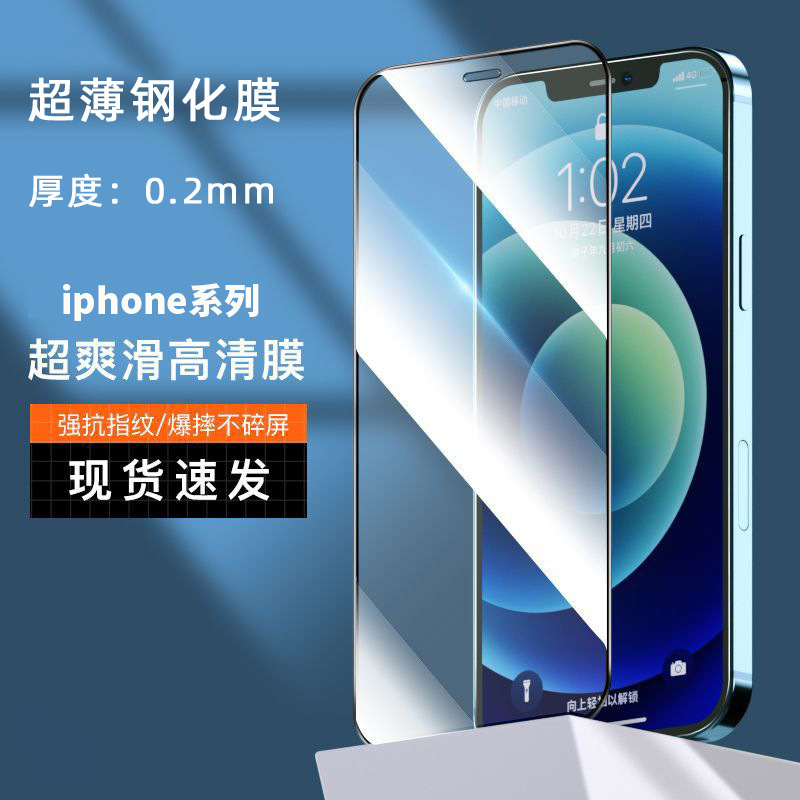 适用苹果14防指纹0.2超薄钢化膜iphone13高清全屏12pro保护膜