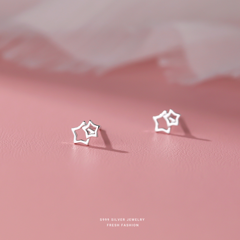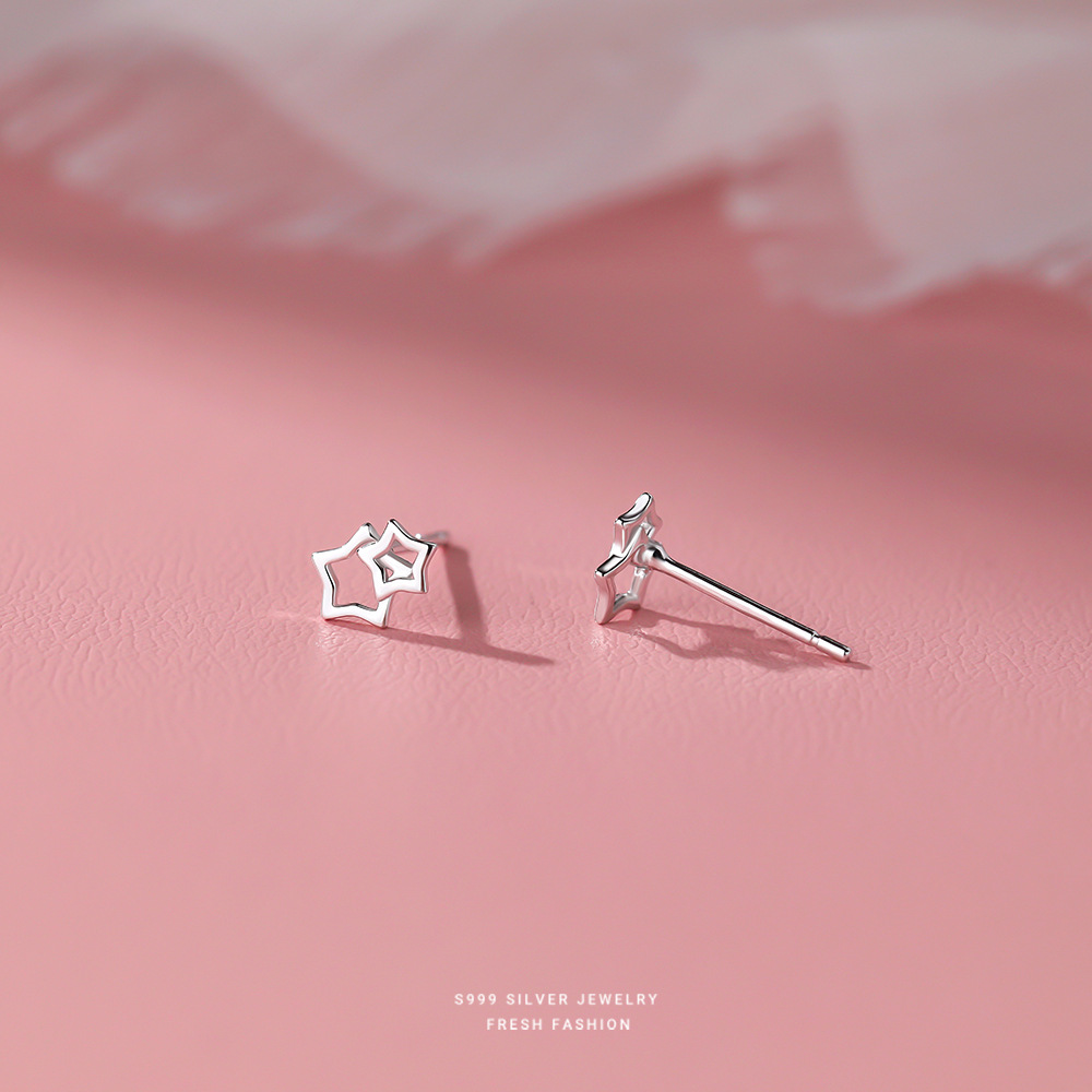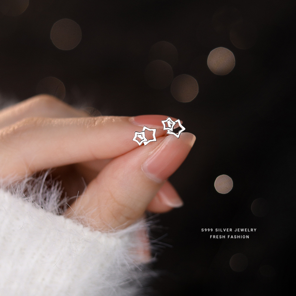 s999足银五角星耳钉女时尚ins风星星设计感耳饰闺蜜情侣礼物
