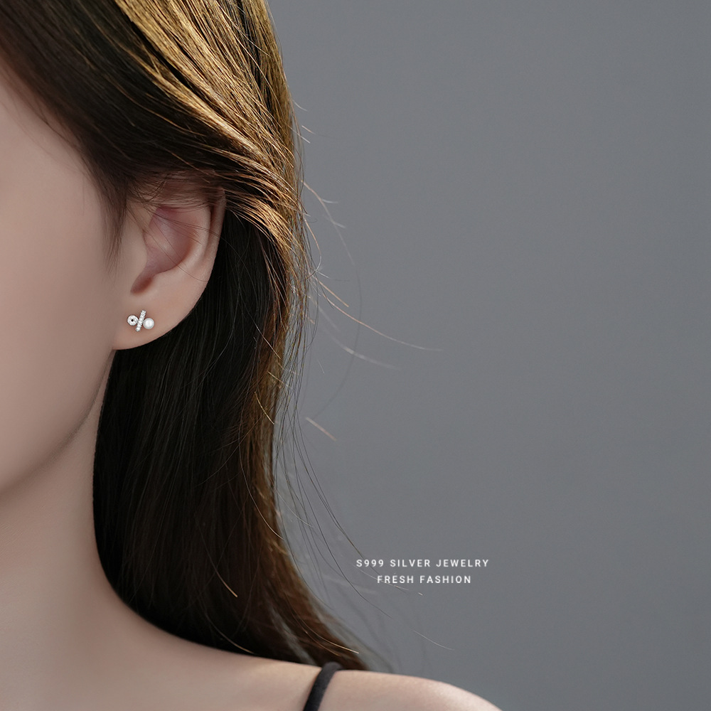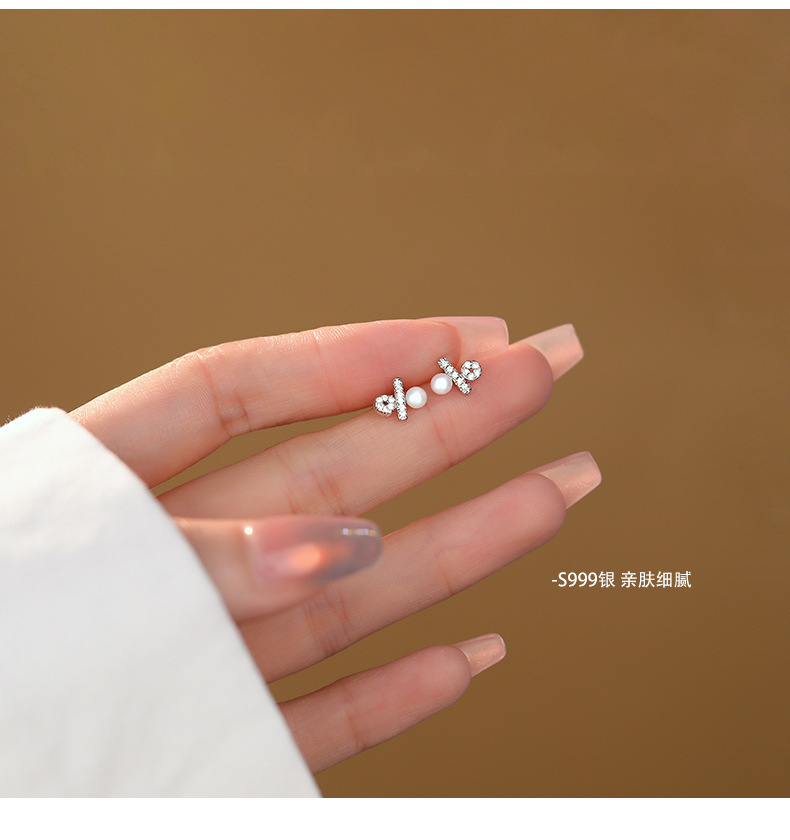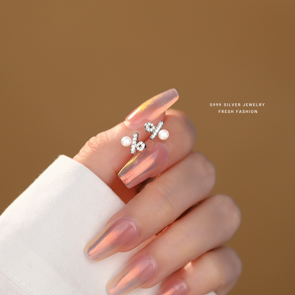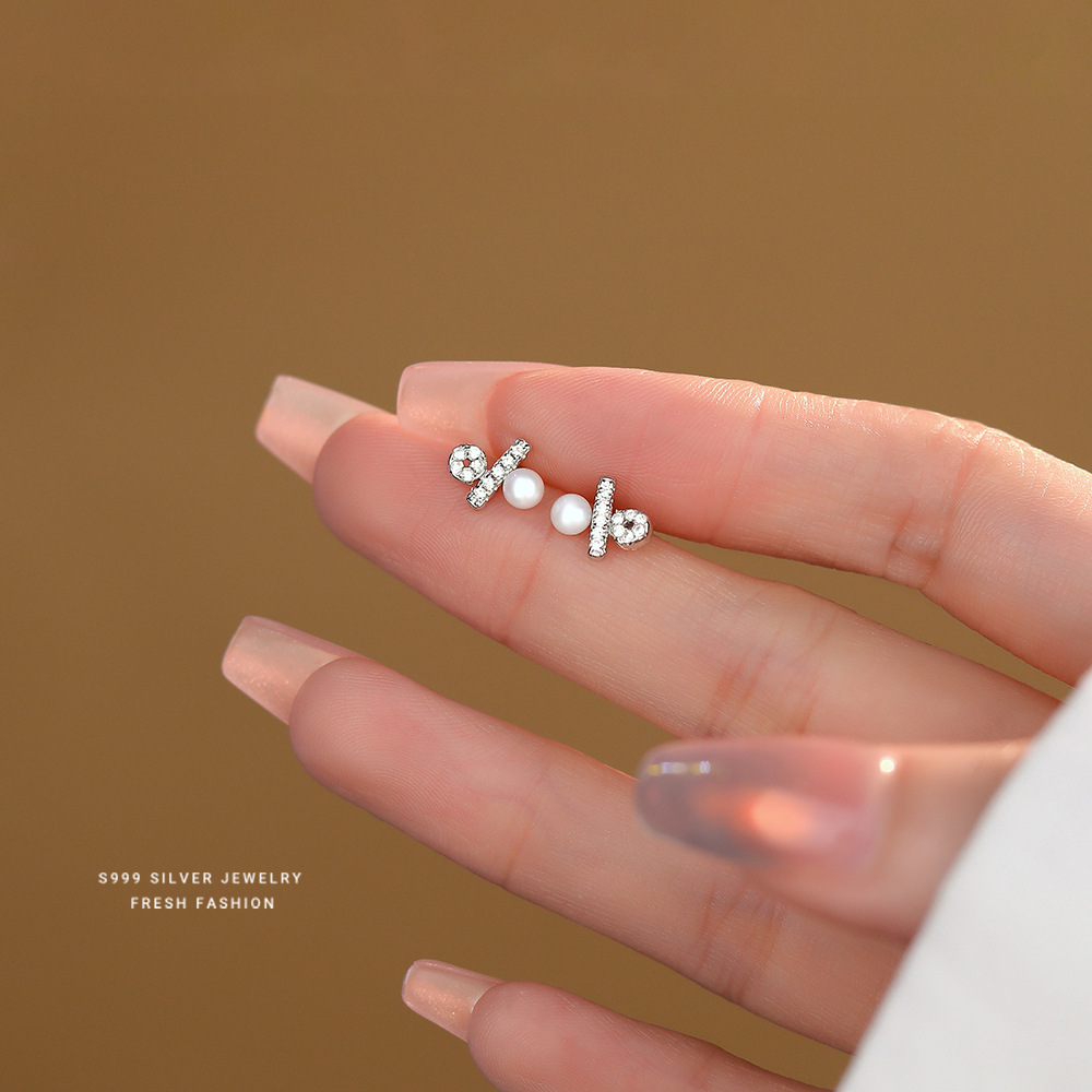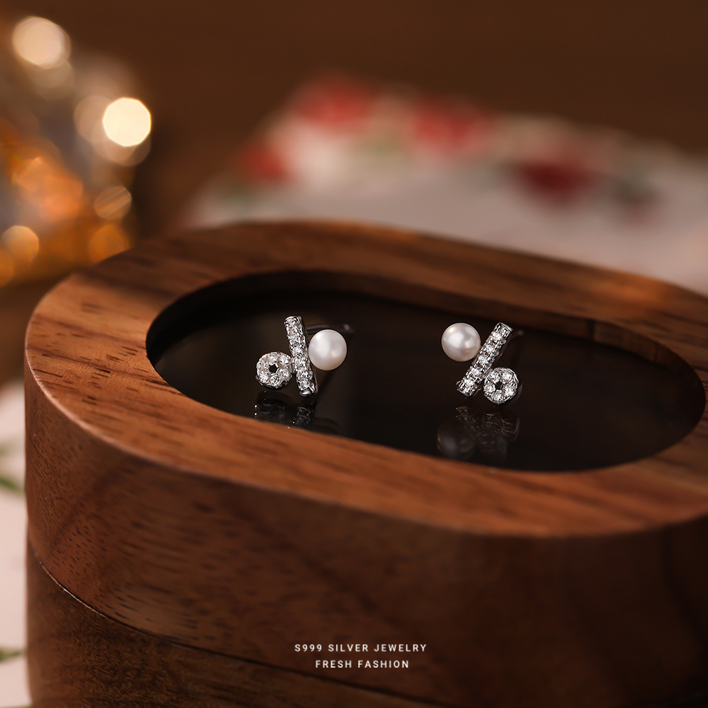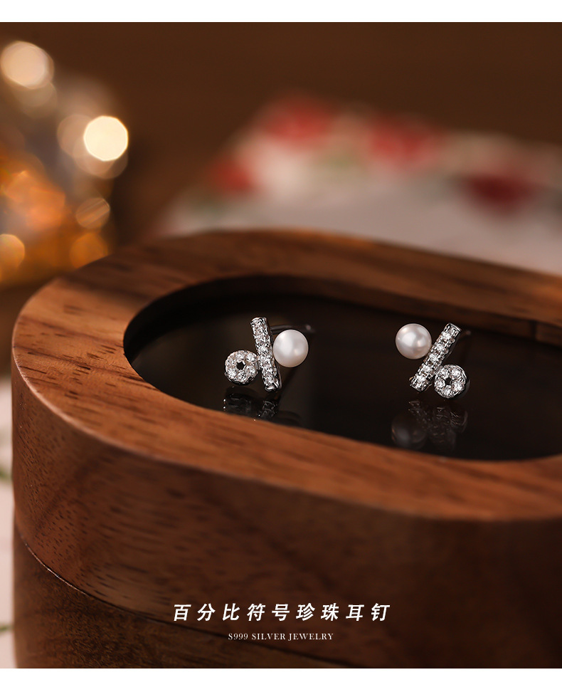 百分比符号淡水珍珠耳钉女s999纯银轻奢高级感百搭足银耳饰微镶