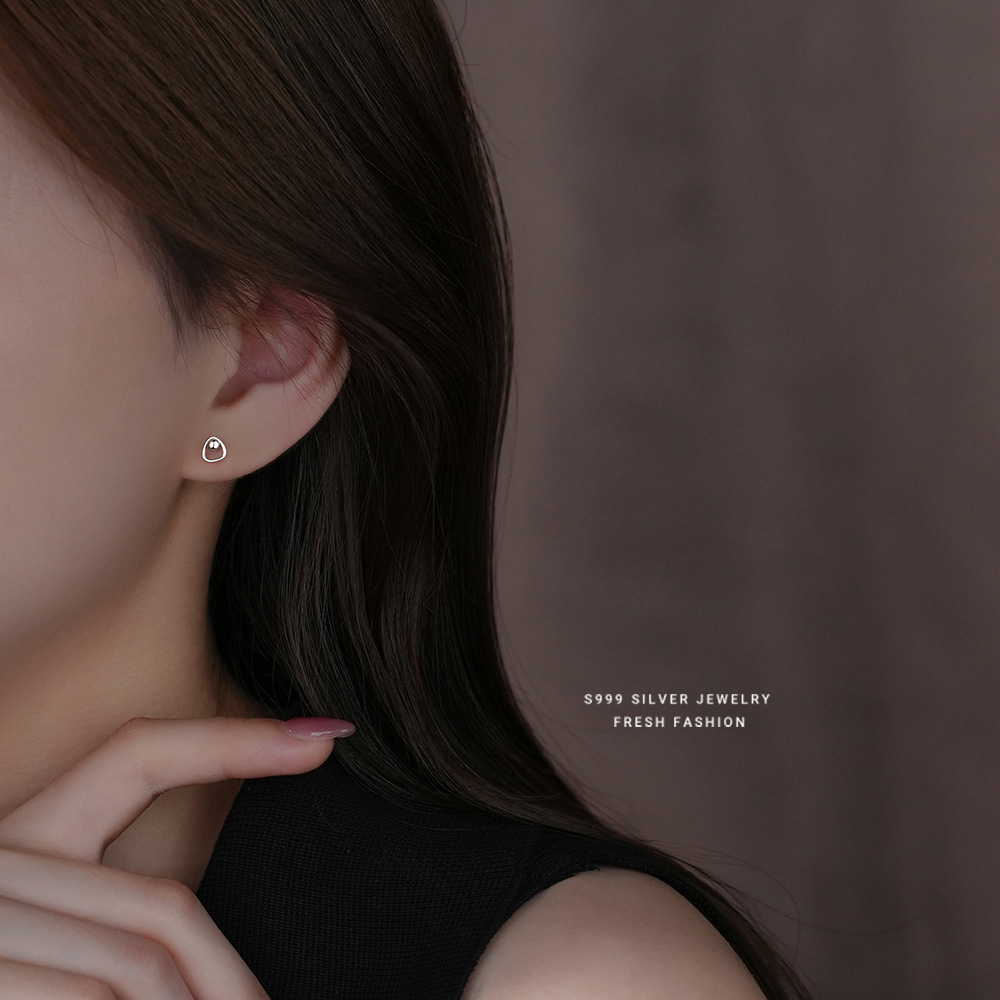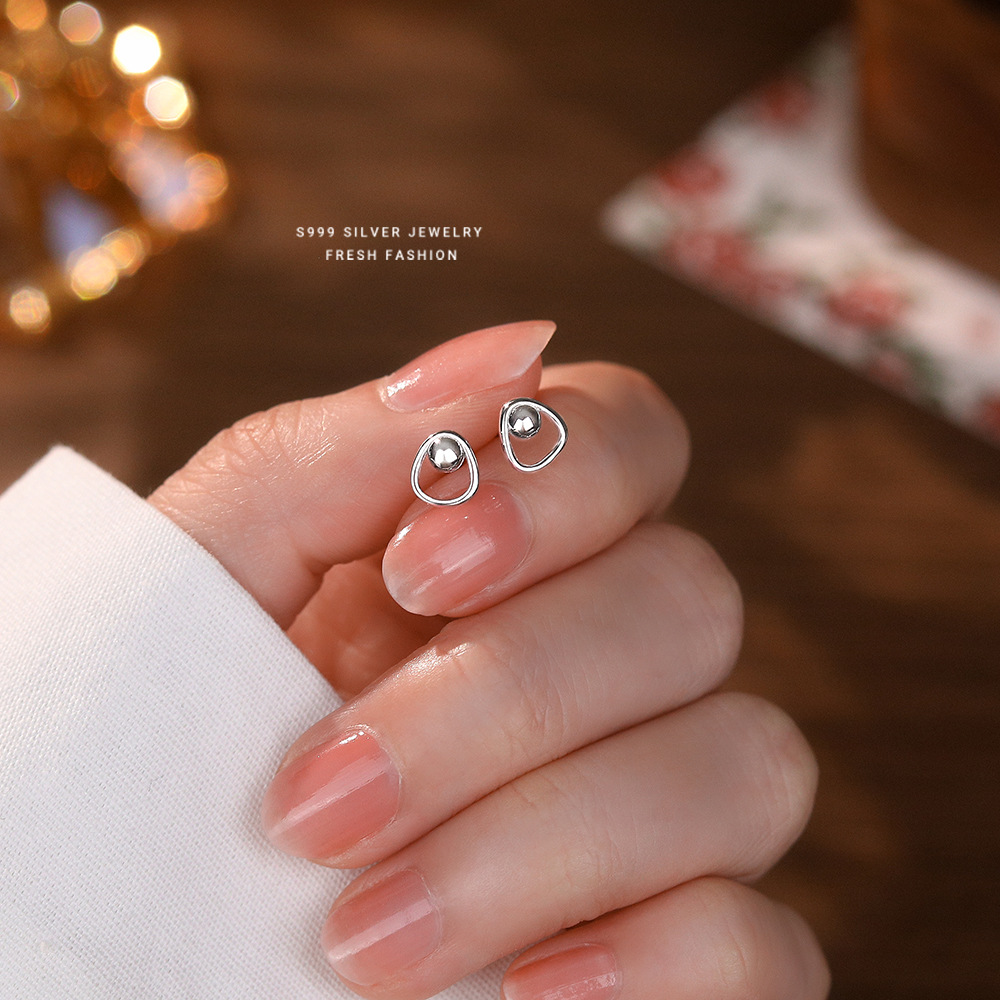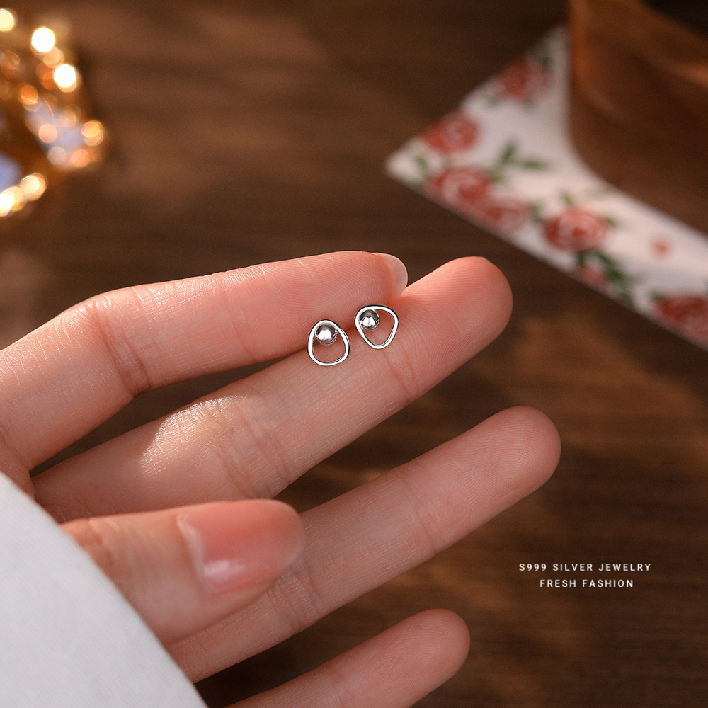 几何镂空耳钉女s999纯银小众冷淡风百搭学生足银耳饰简约首饰