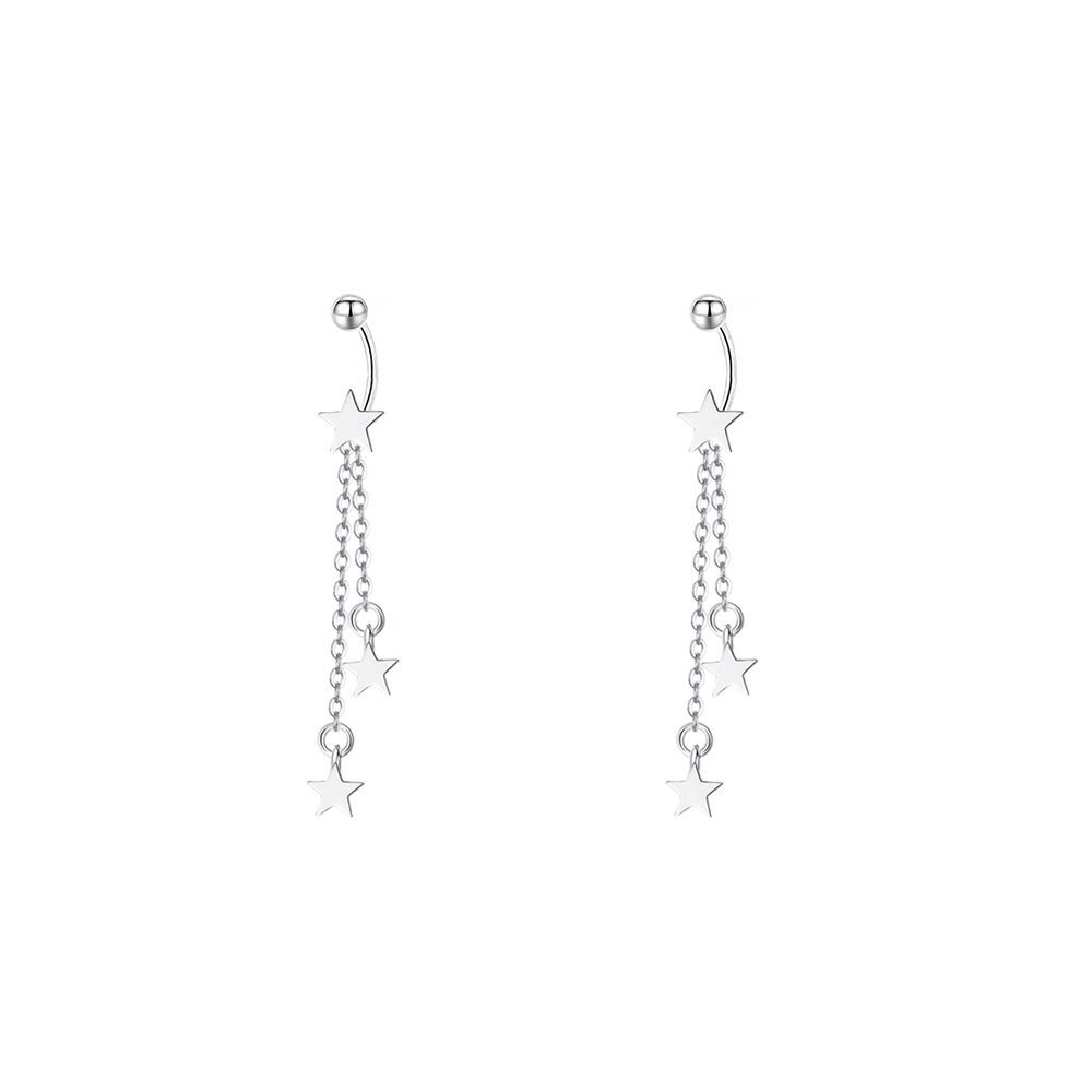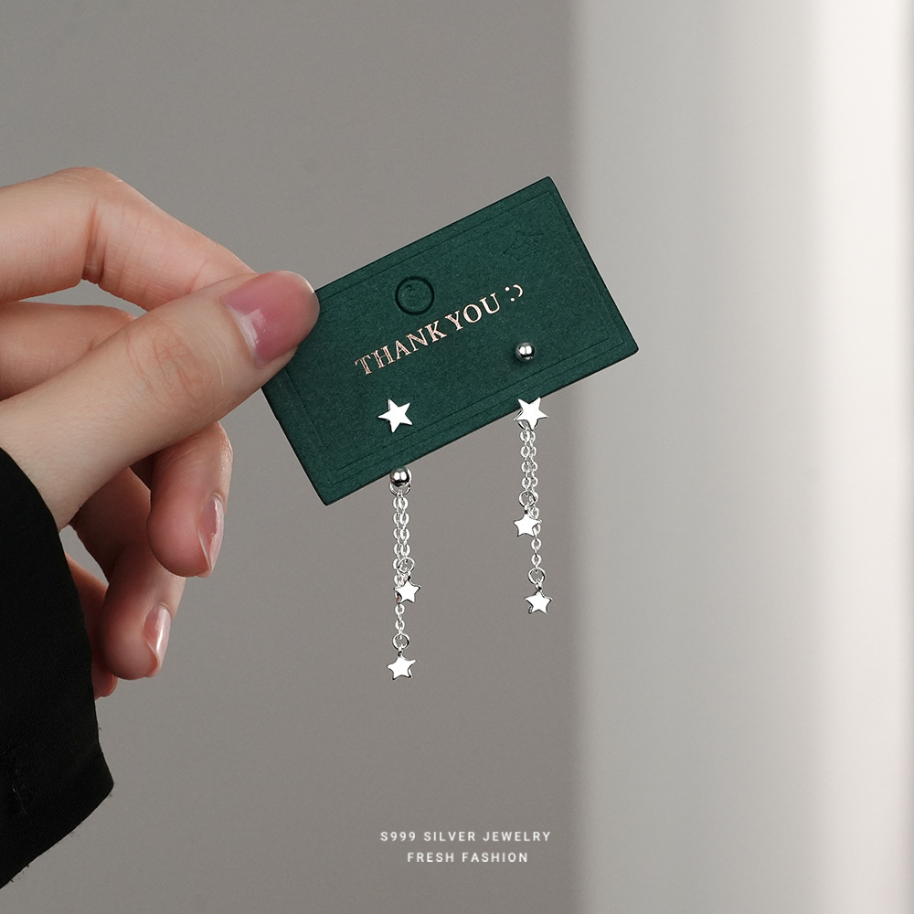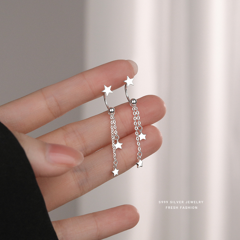 圆珠螺丝星星流苏耳环女s999纯银小清新百搭简约耳钩足银耳坠耳饰