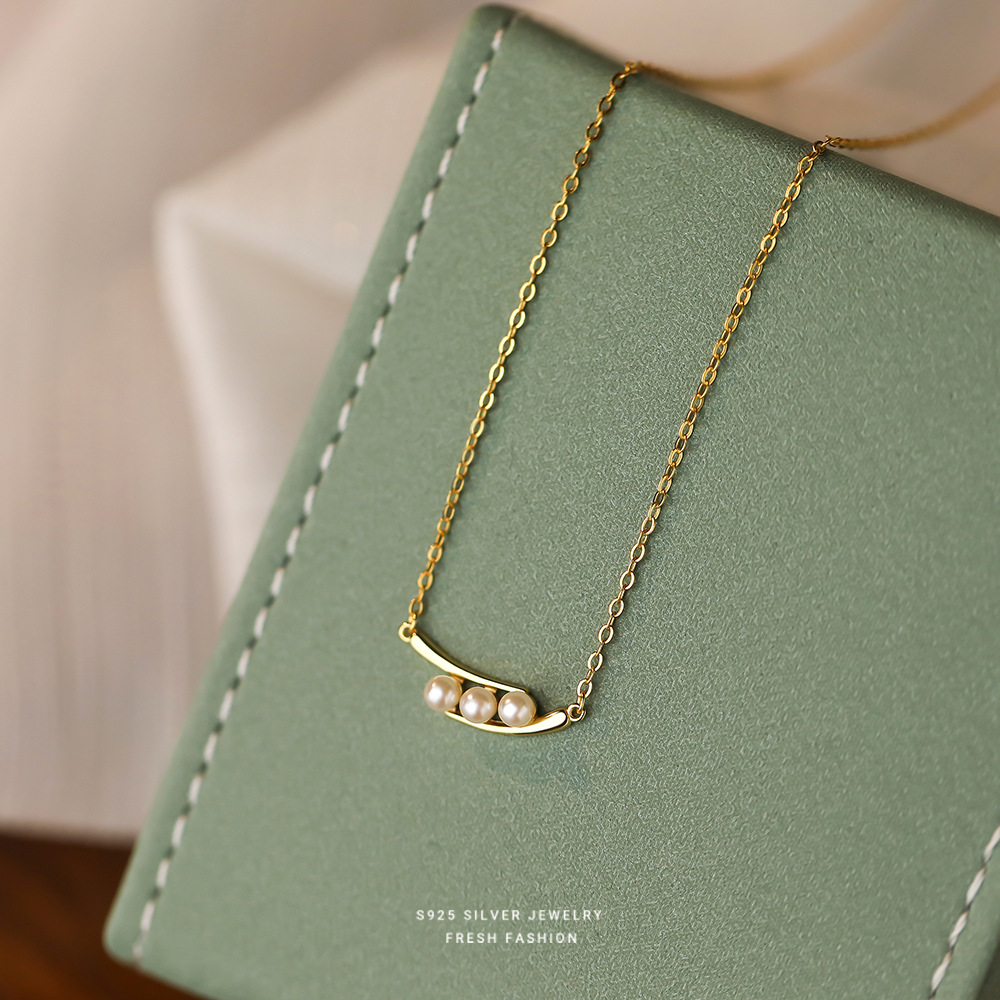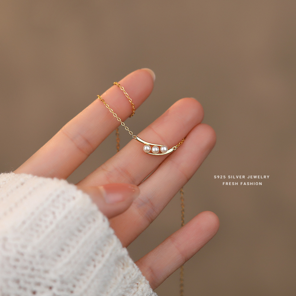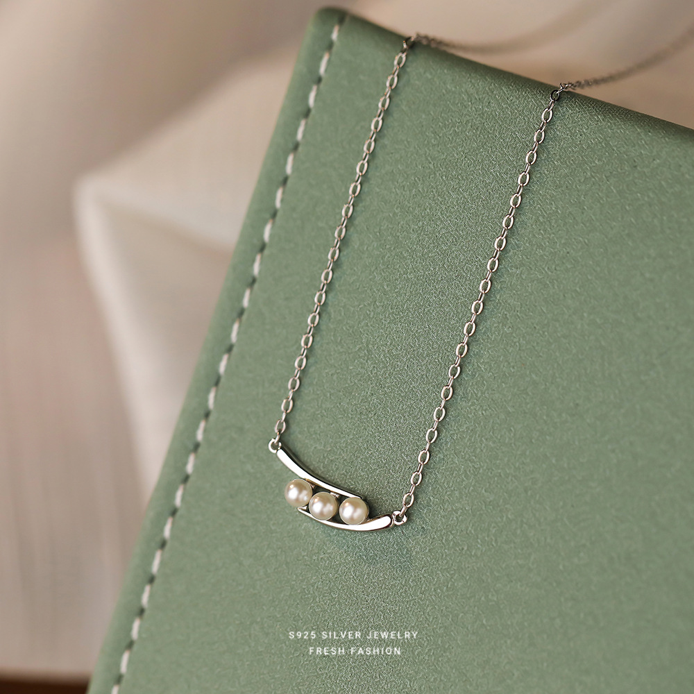 S925纯银豌豆荚珍珠项链女轻奢复古小众简约设计高级感吊坠锁骨链