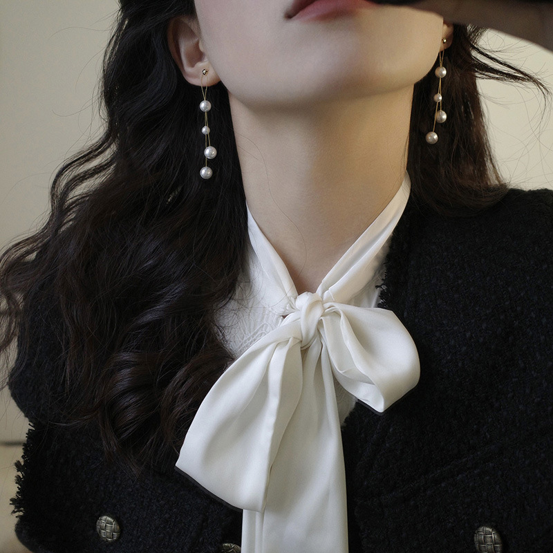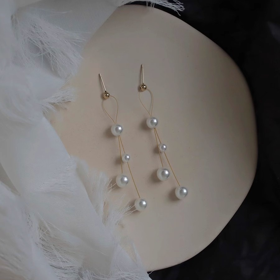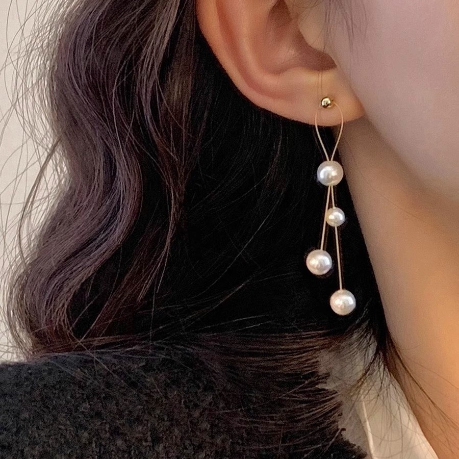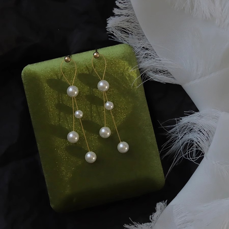 S925银针高级感长款流苏珍珠耳环女气质耳线耳钉显脸瘦