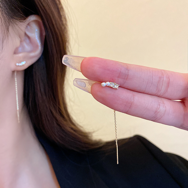 925银针长款珍珠耳环女ins风甜美气质流苏耳线耳钉高级感百搭耳饰