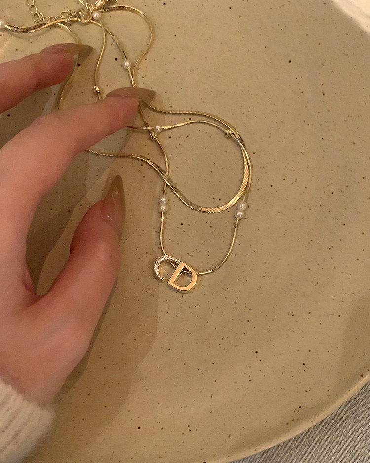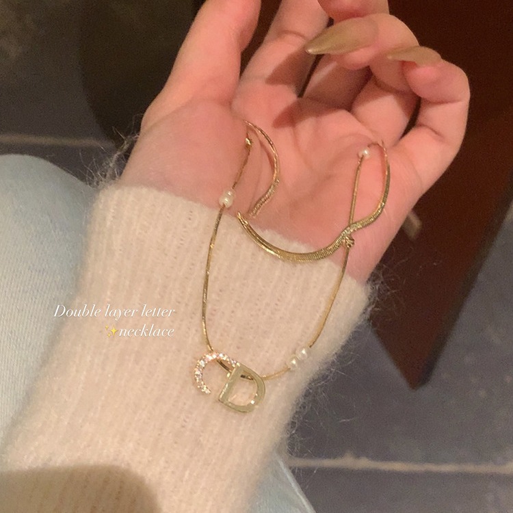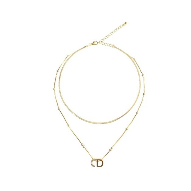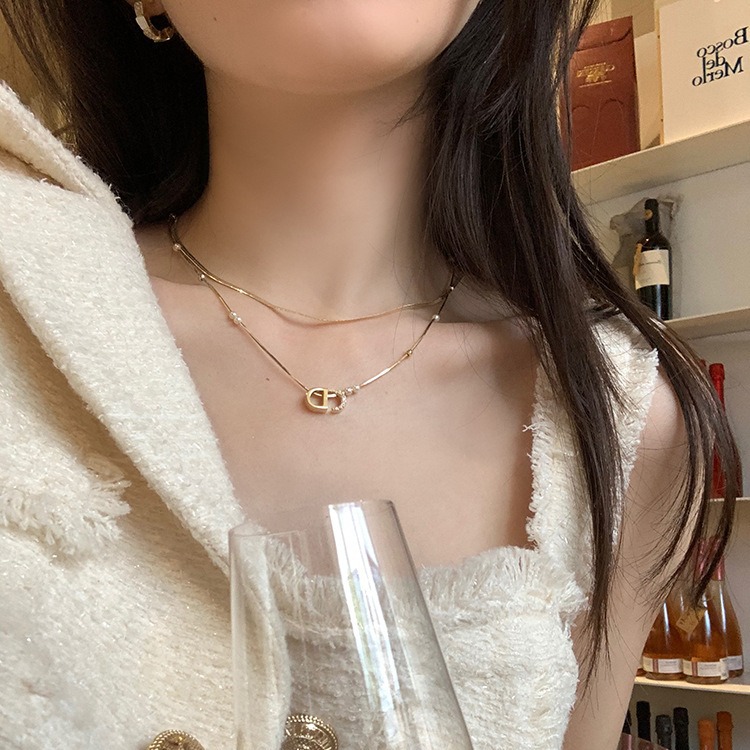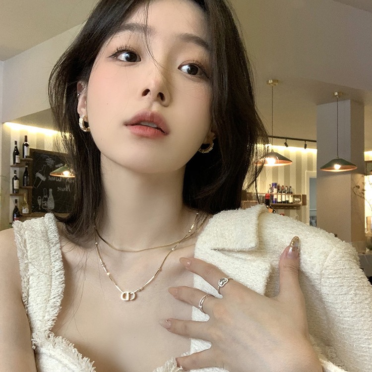 法式轻奢复古两件套字母项链爆款小众设计高级锁骨链批发配饰