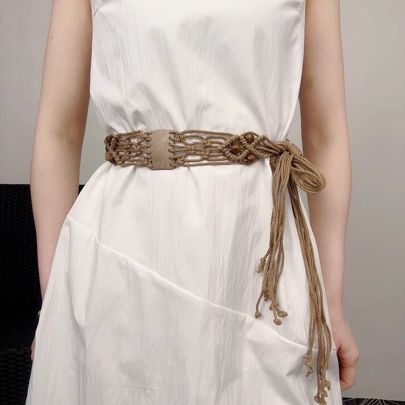 波西米亚复古风蜡绳编织腰带女 民族风手工编织腰绳女士腰带
